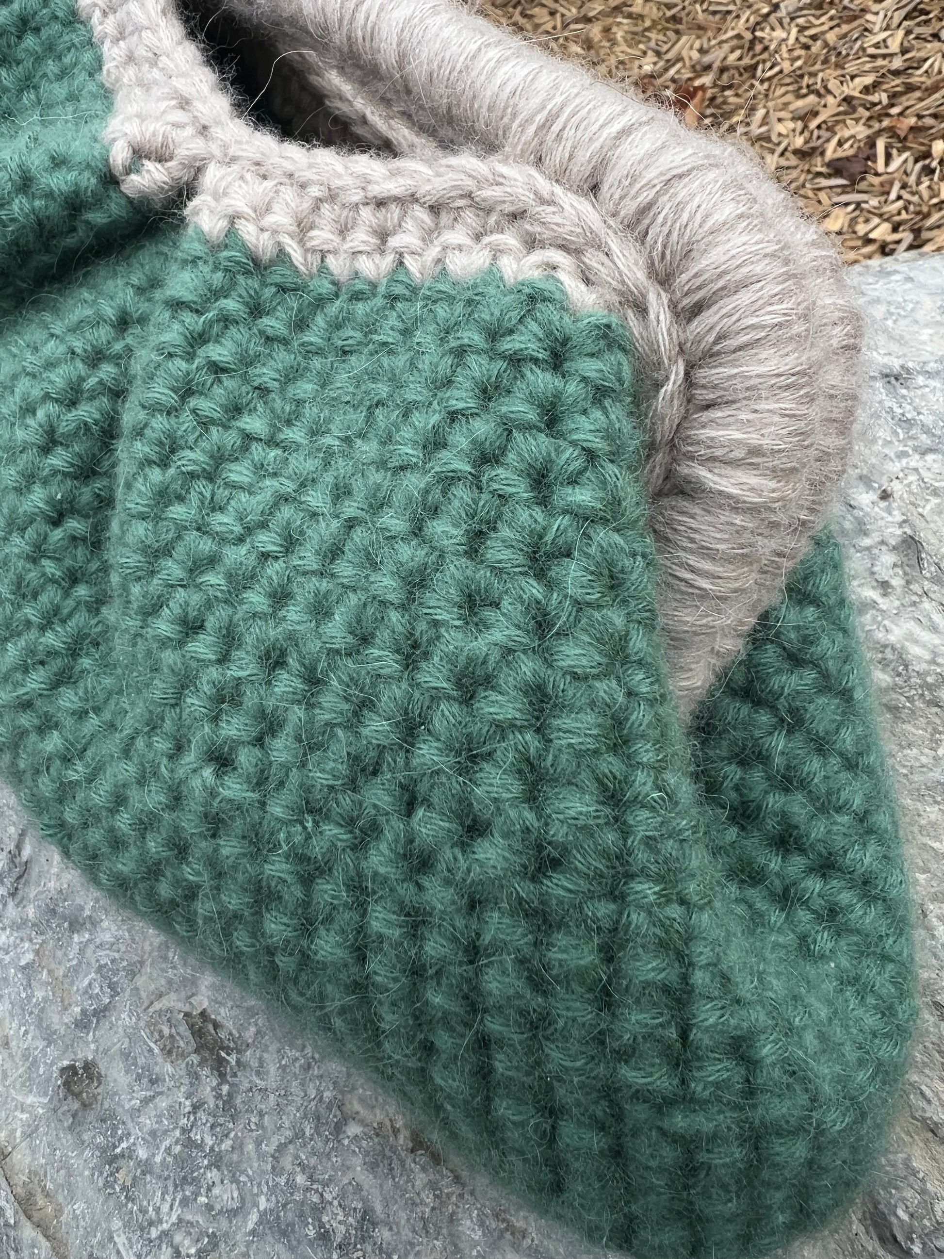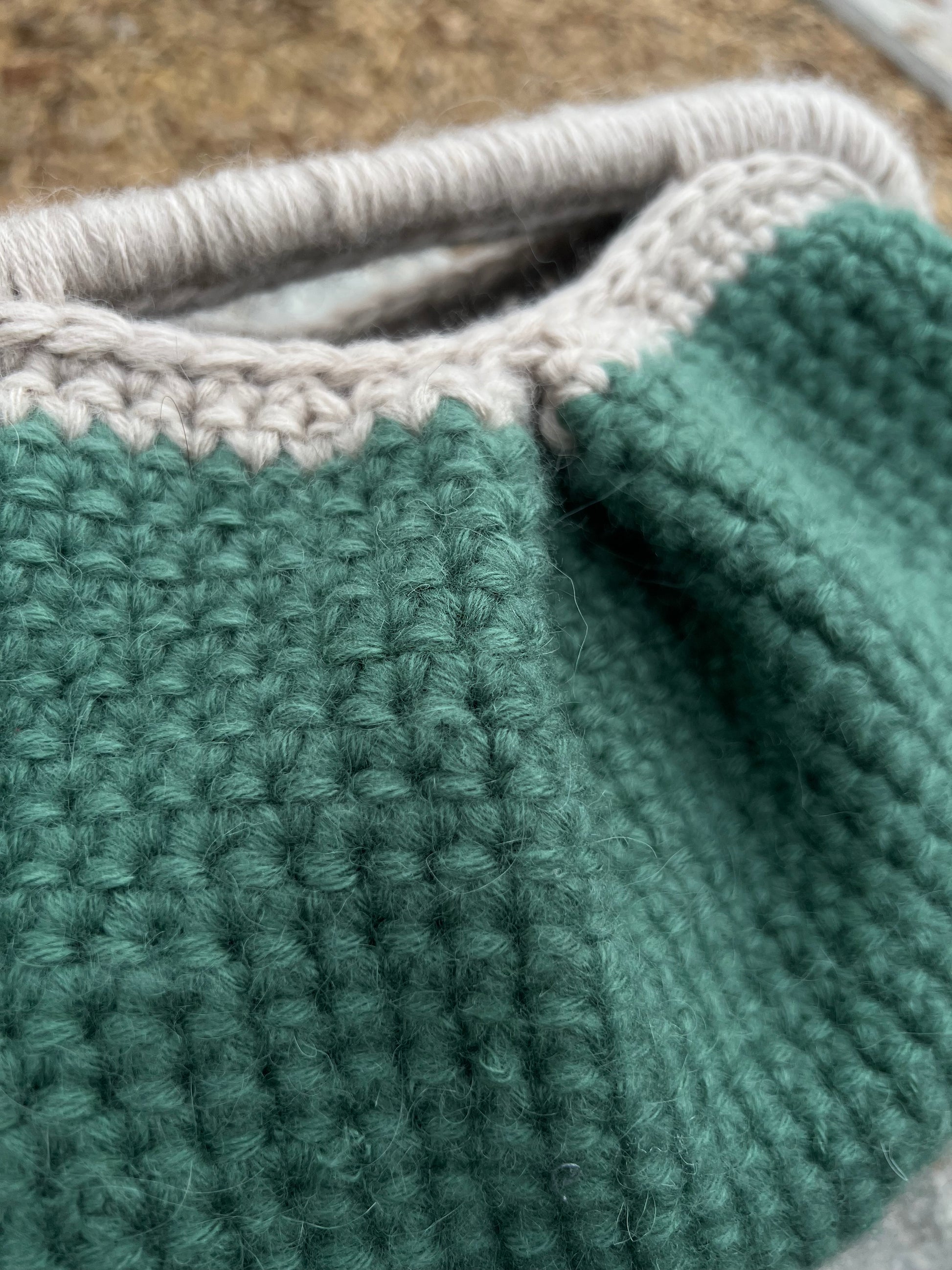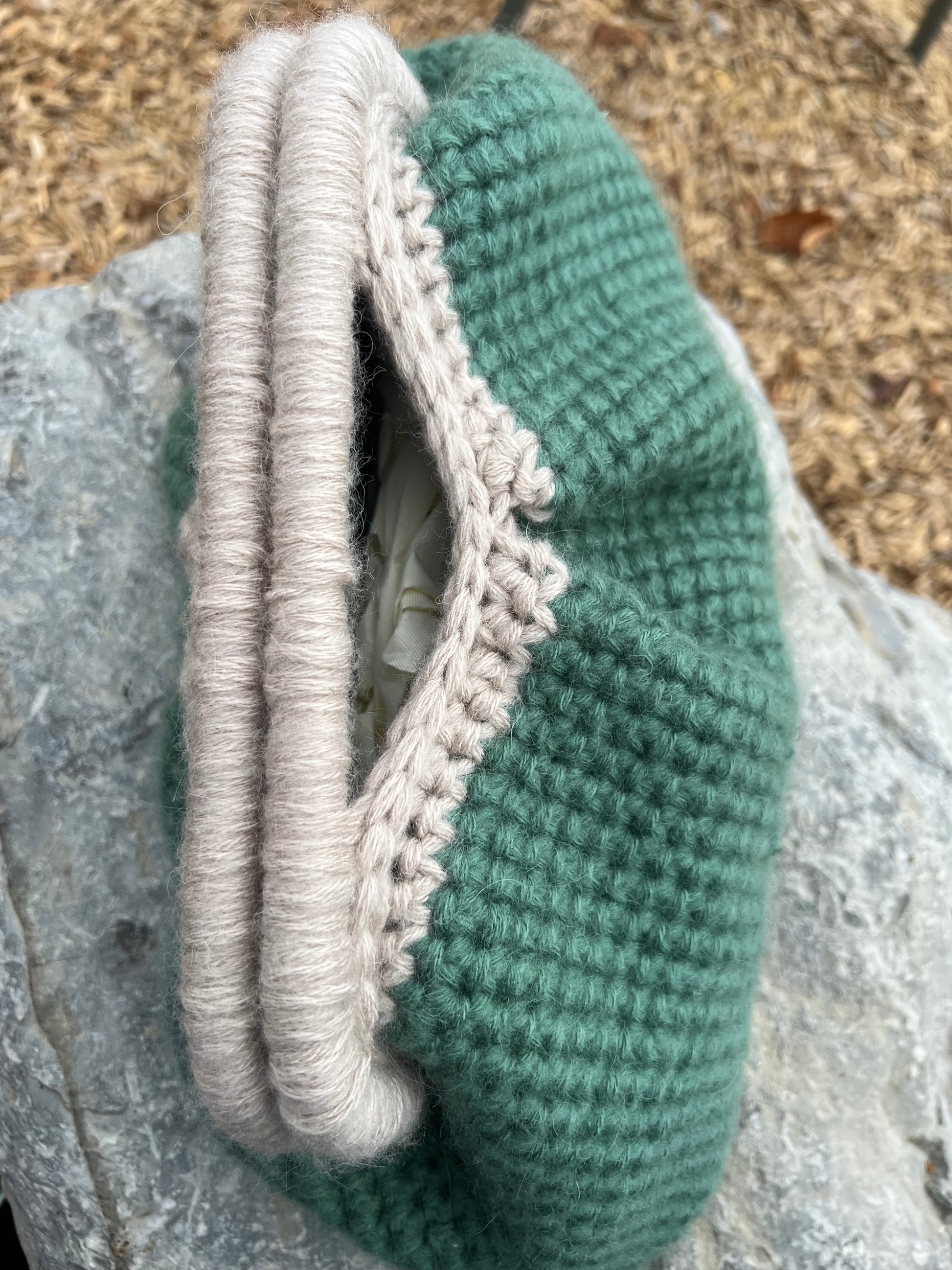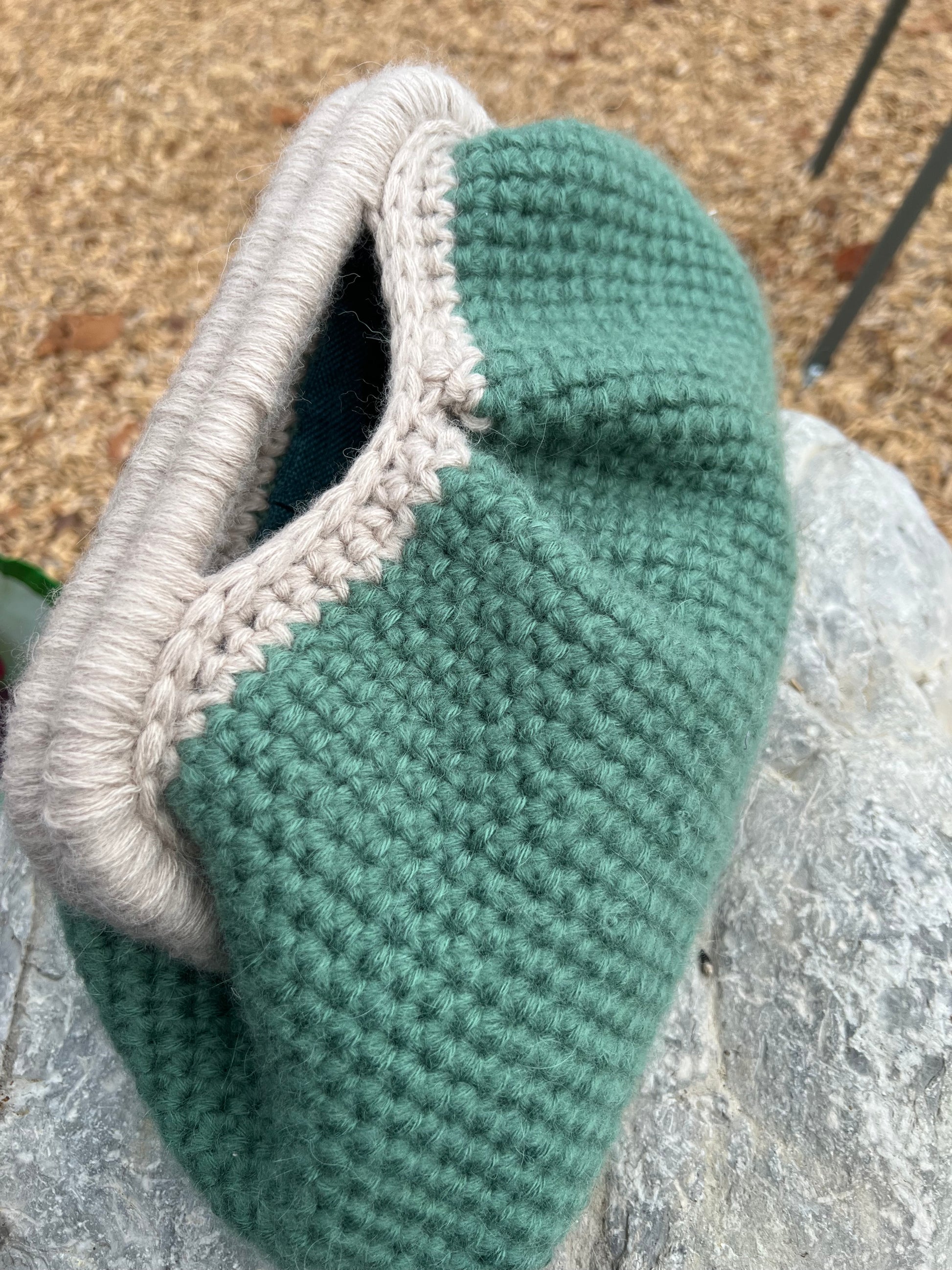 Grande clutch realizzata in morbida lana, elegante e versatile. I colori verde e avena si combinano armoniosamente per creare un accessorio di tendenza, perfetto sia per il giorno che per la sera.