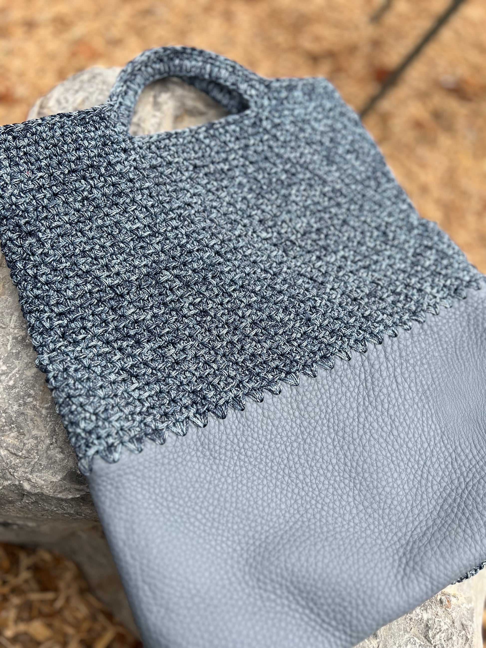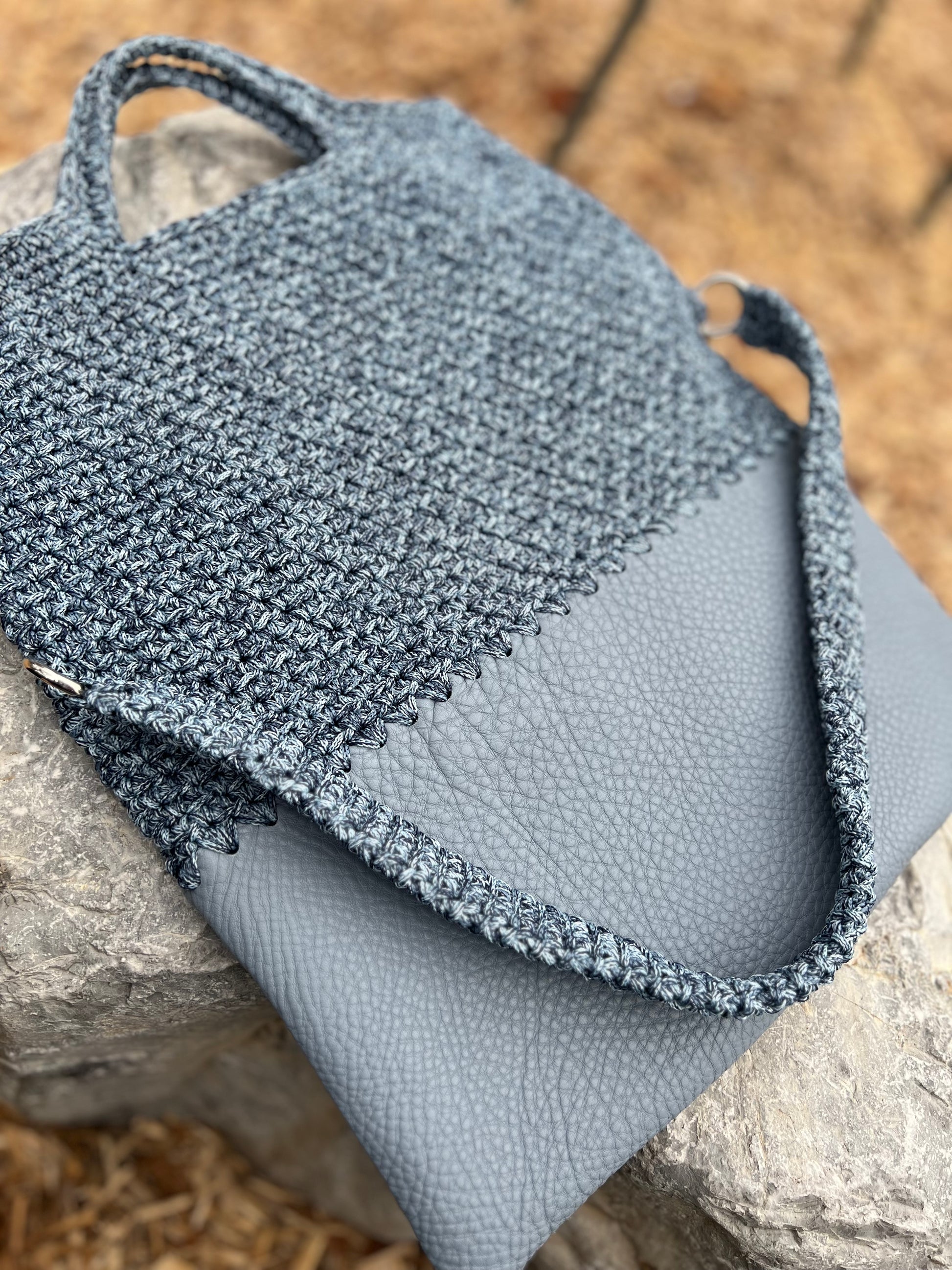 Tote bag meravigliosa in color carta da zucchero, dal design unico che combina metà cordino color mélange e metà vera pelle.