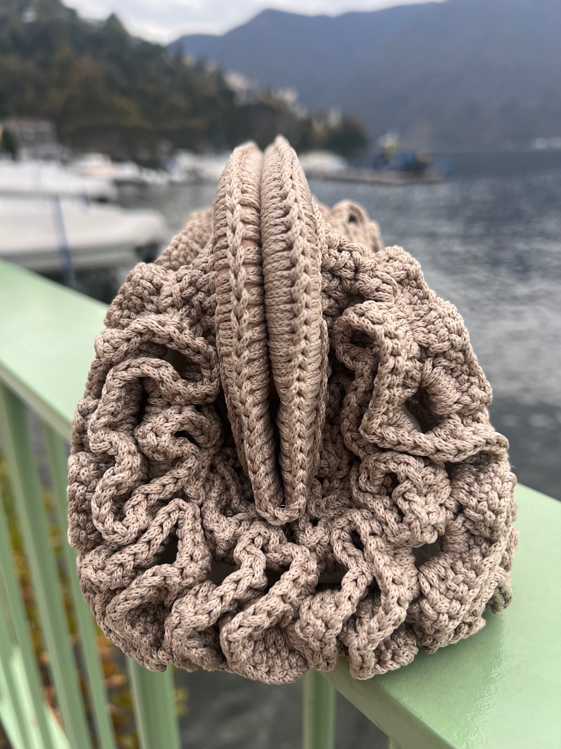 Il dettaglio della lavorazione dona al filato un effetto arricciato unico, trasformando ogni pezzo in un piccolo capolavoro.