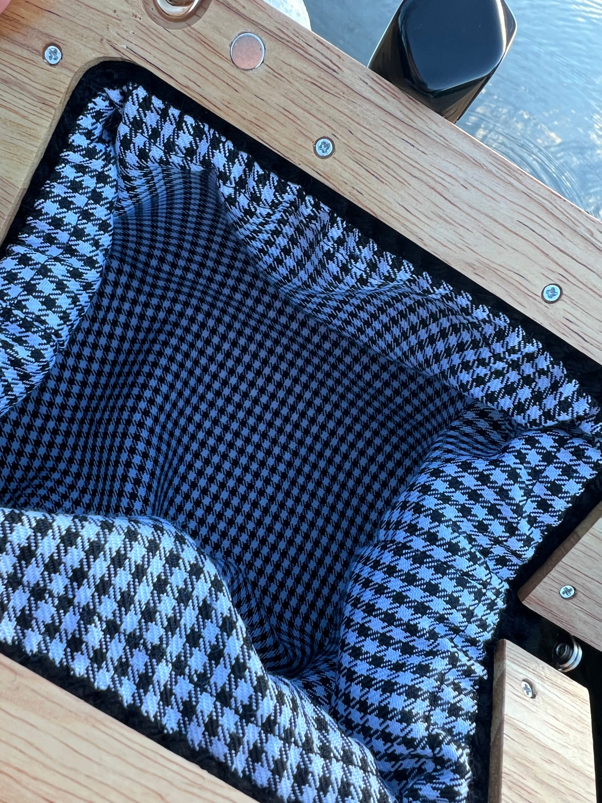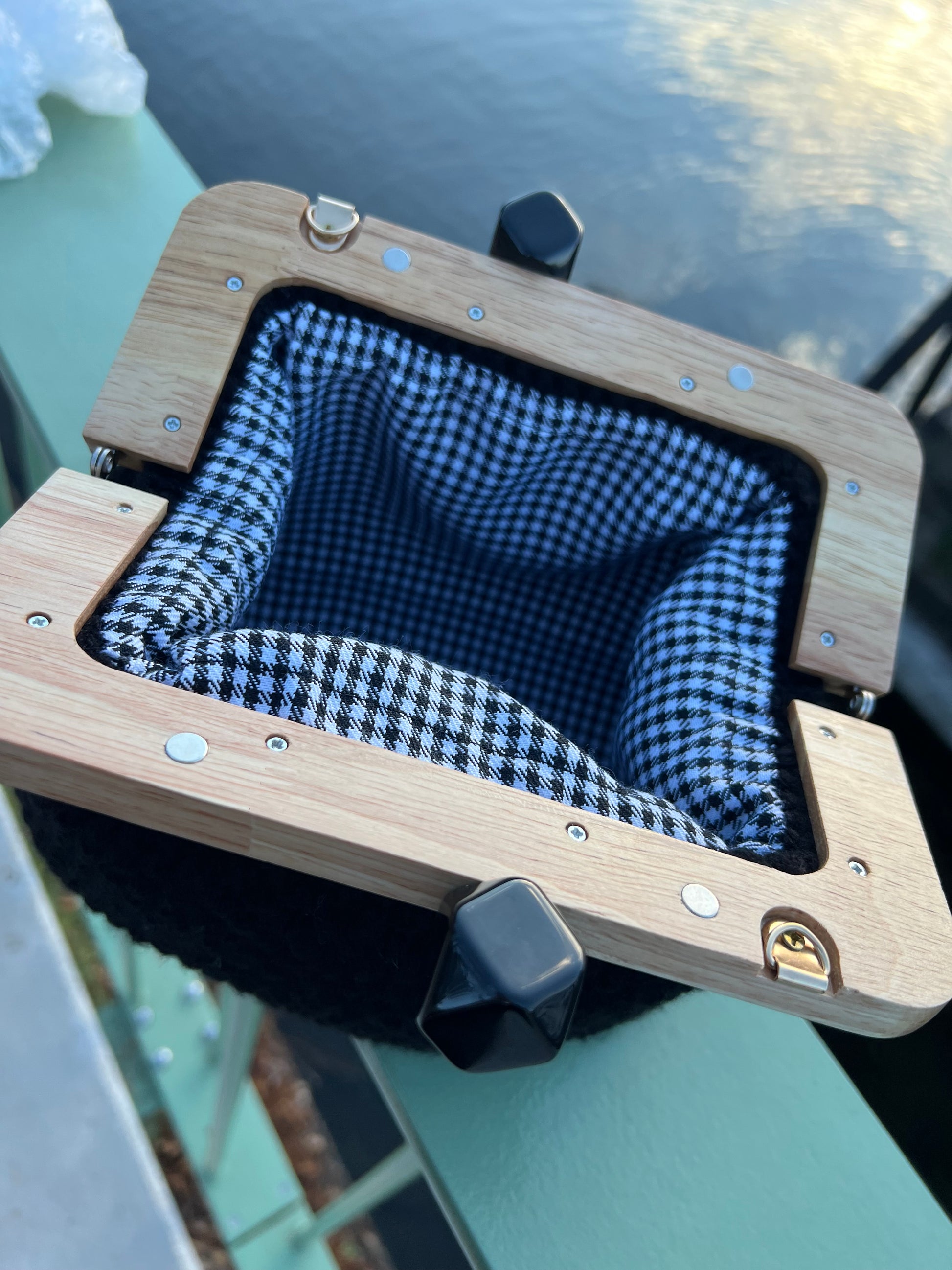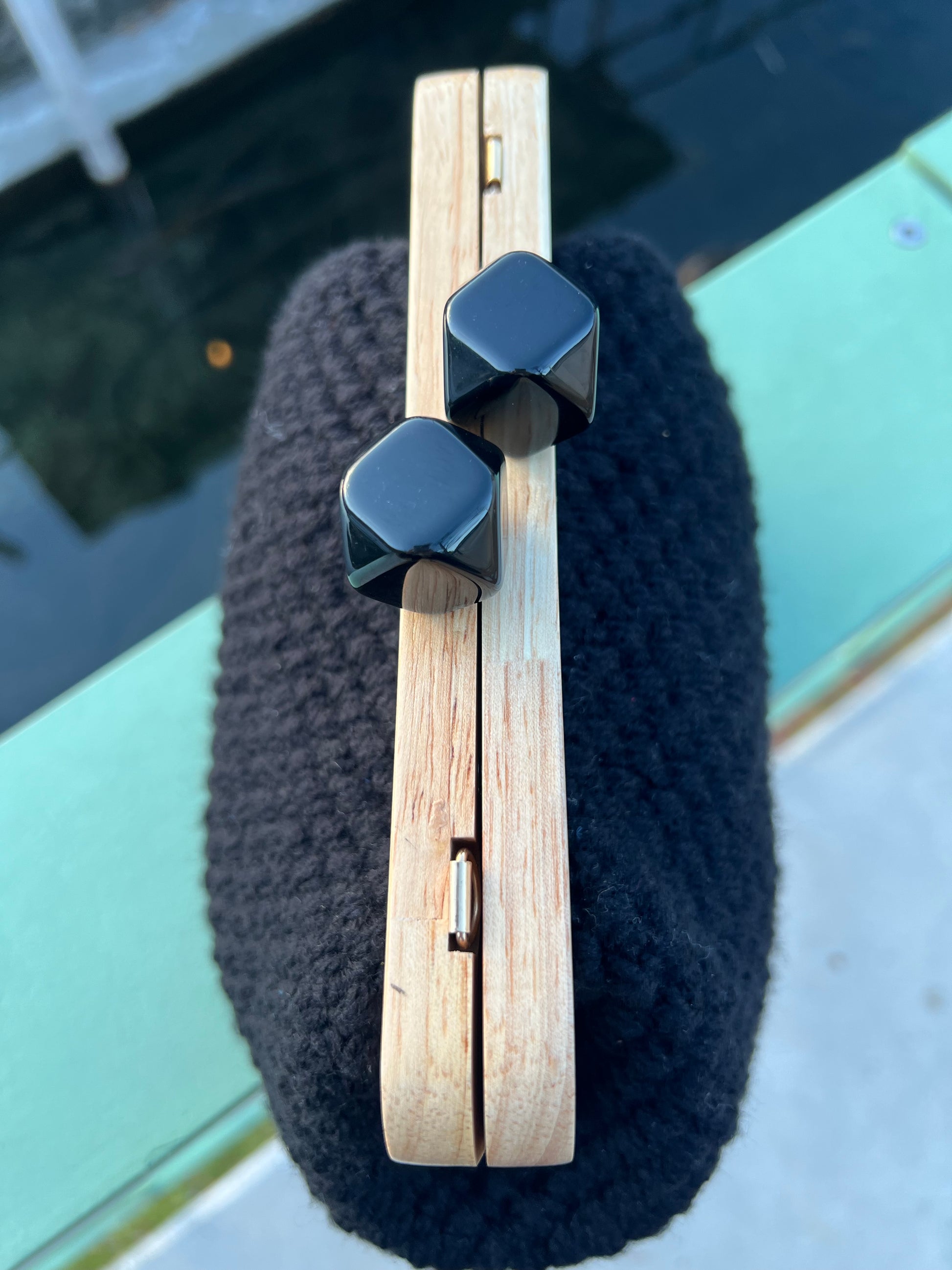 Clutch nera realizzata a mano, elegante e raffinata.