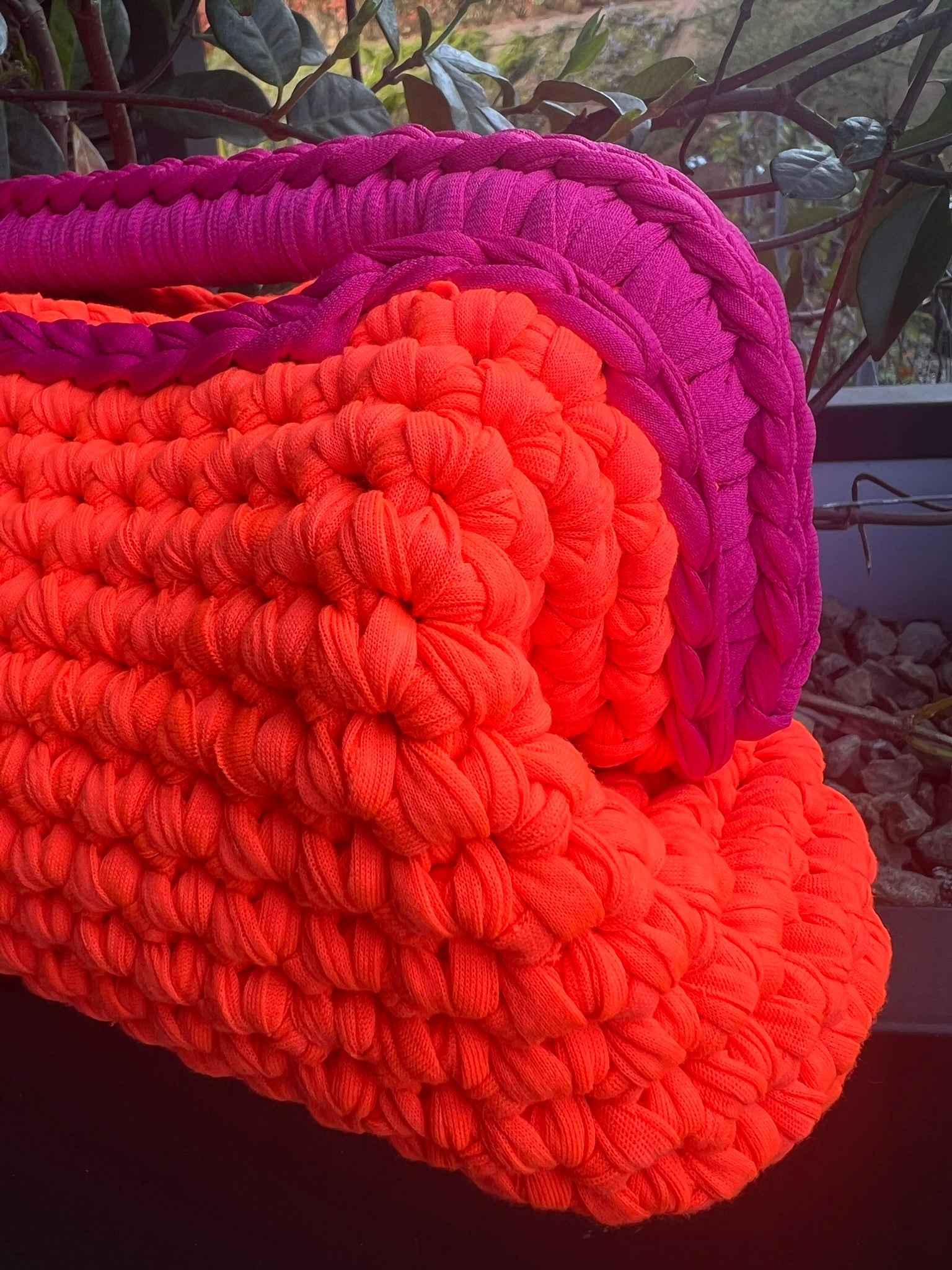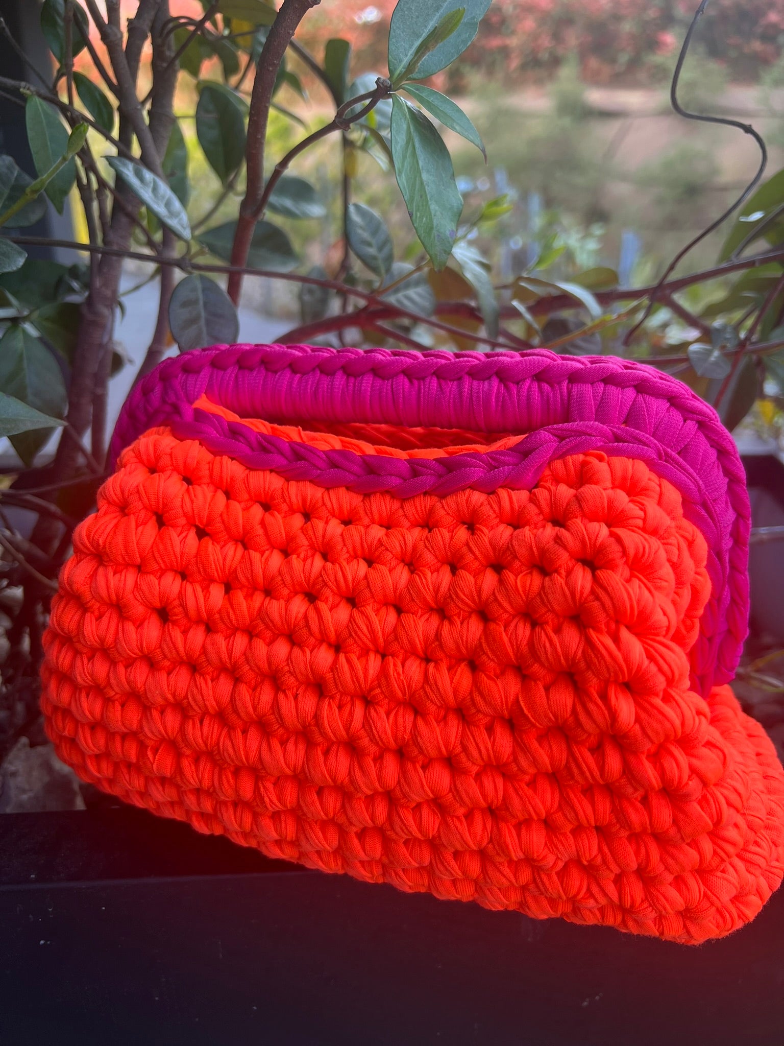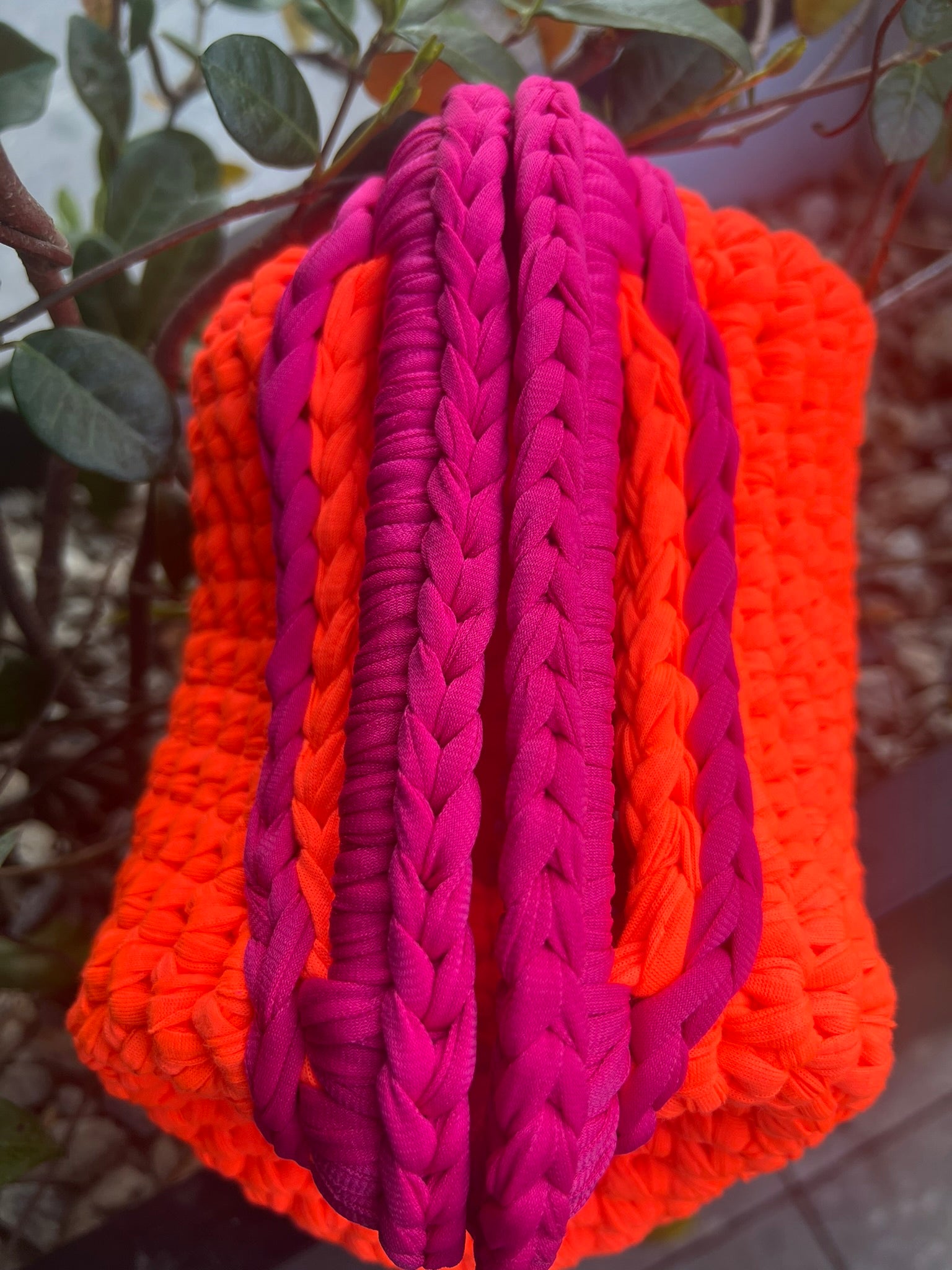 Un’esplosione di luce che danza tra passione e libertà. L’arancio vivido, caldo e vibrante, si intreccia con un fucsia audace, in un dialogo acceso tra energia e femminilità.