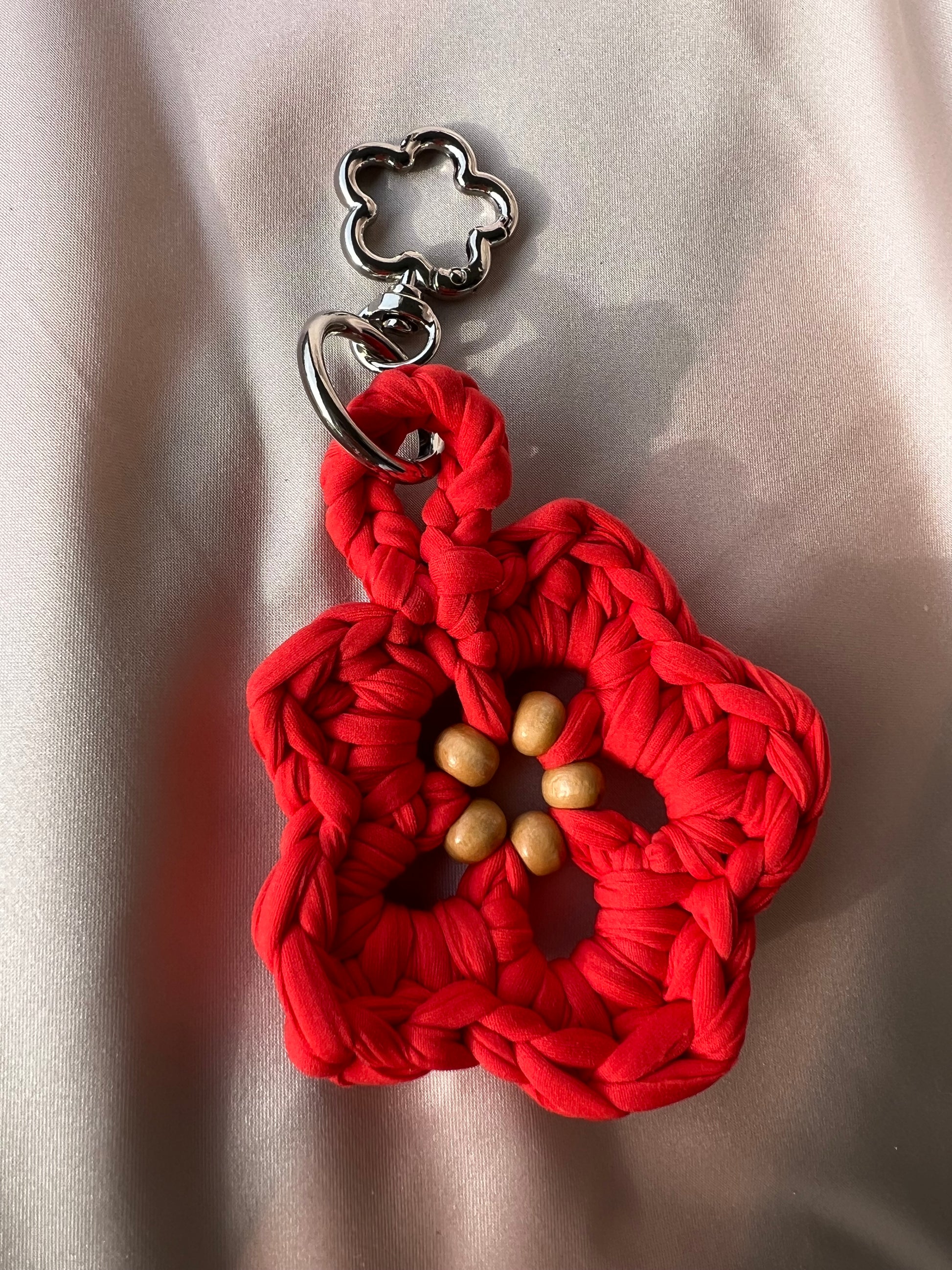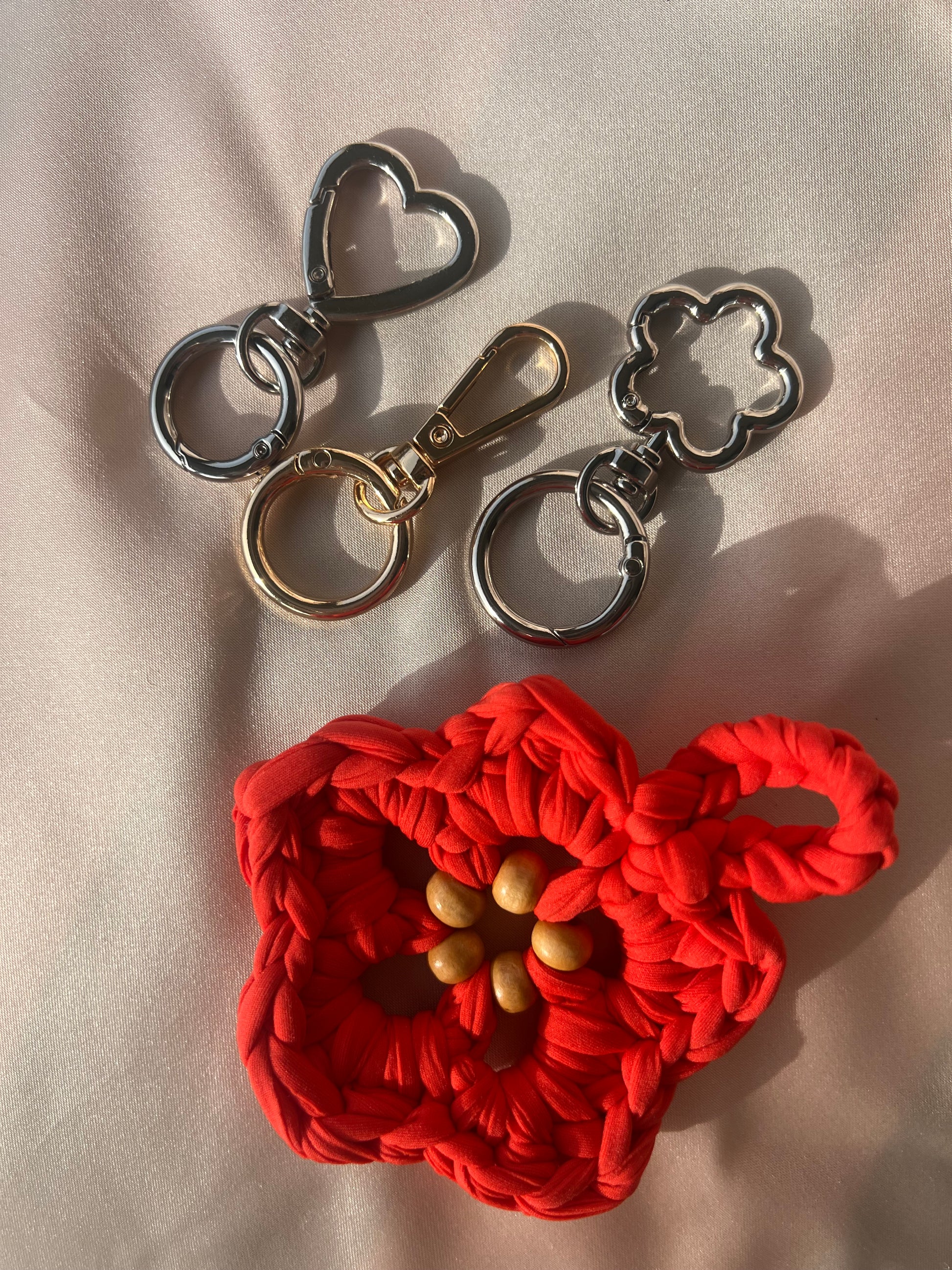 Fiore in fettuccia di Lycra con perline e moschettone (specificare durante il check la preferenza tra liscio, fiore e cuore).