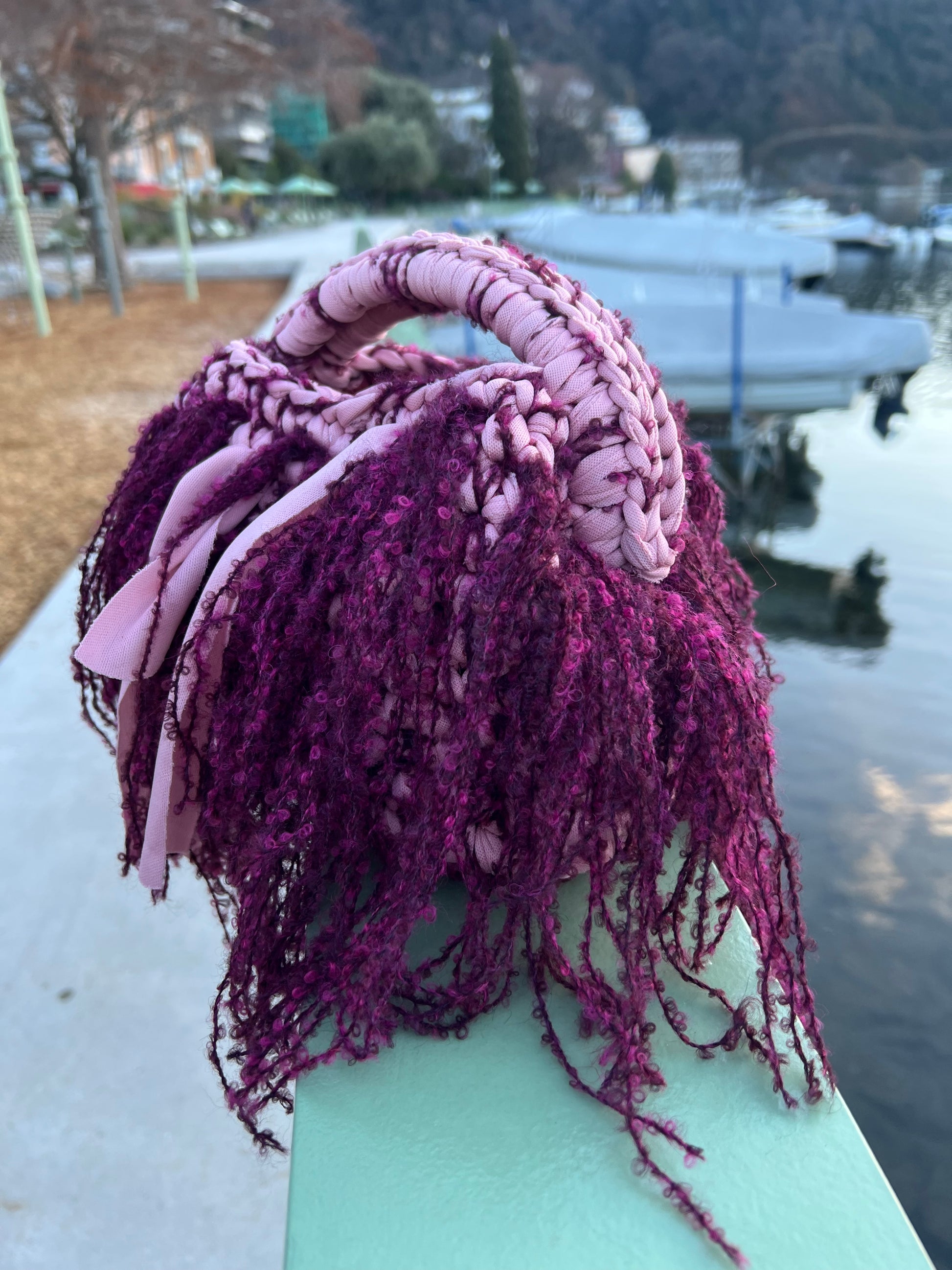 Esplosione di colore e movimento: la nostra clutch modello gipsy è caratterizzata da una chiusura a molla rotonda e da tante frange in tonalità rosa e fuxia, che le donano un fascino vivace e originale. Fatto a mano con cura artigianale, questo accessorio è perfetto per chi ama distinguersi con uno stile giocoso e unico, aggiungendo personalità a ogni outfit.