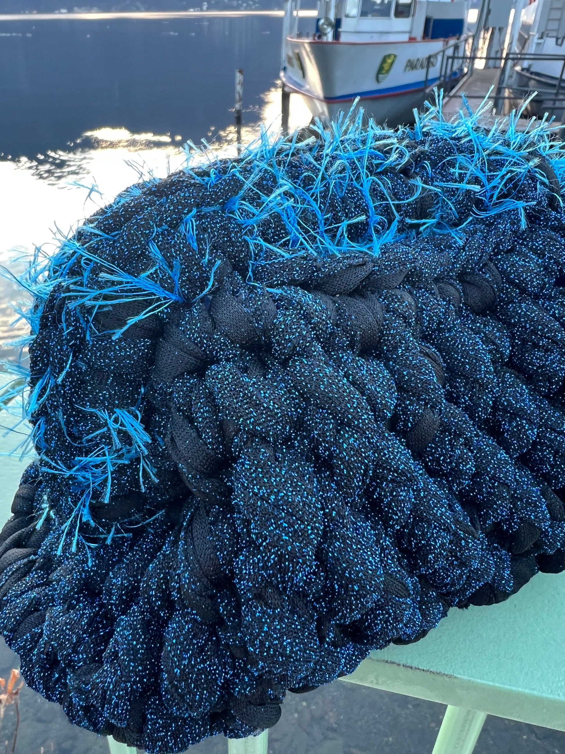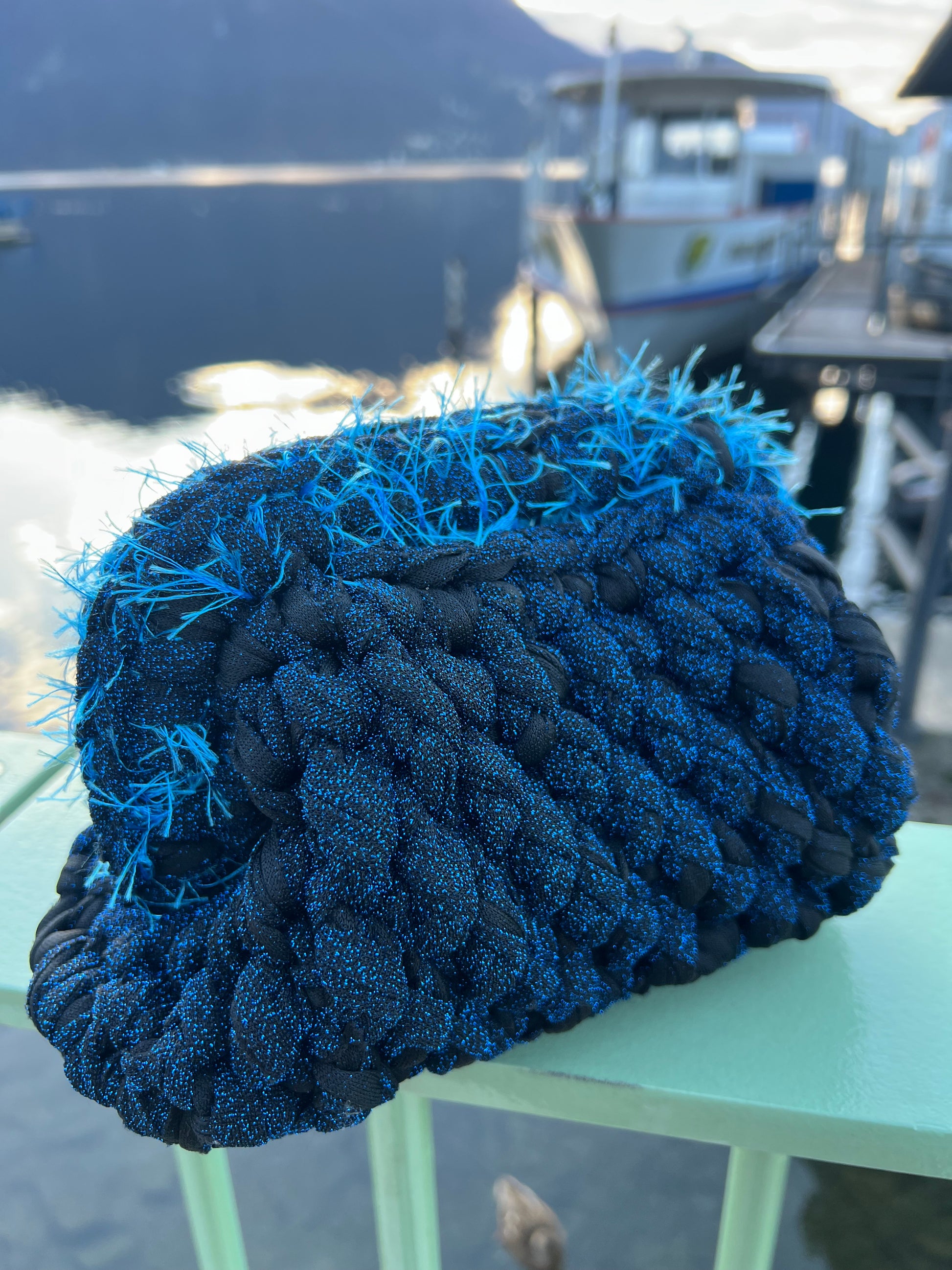 Manico decorativo in pelosetto azzurro, morbido e originale.