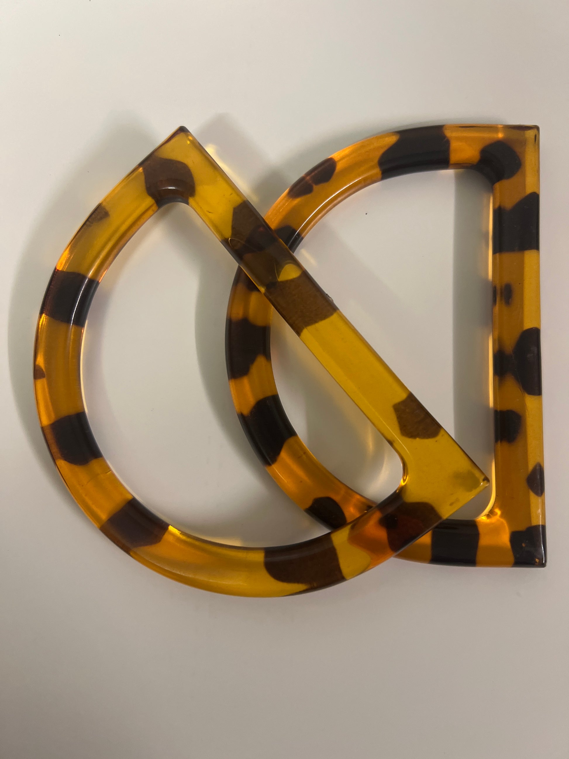 Splendidi Manici in resina color ambrato, forma mezzaluna.