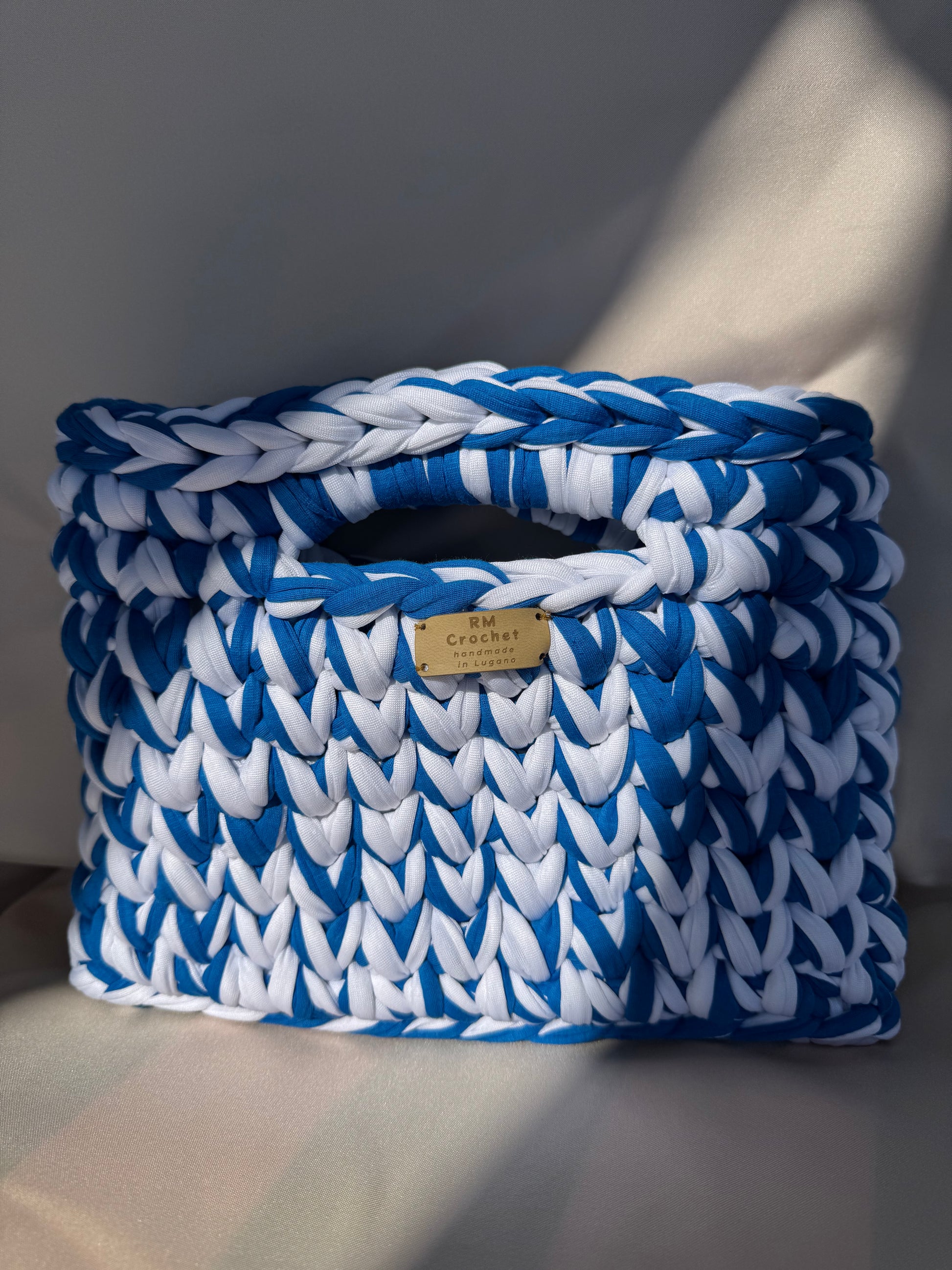Sei in riva al mare, con un abito di lino morbido, di colore azzurro o bianco. Porti l’essenziale con te e questa meravigliosa borsa a cui puoi agganciare una tracolla, te la consiglio di colore argento.