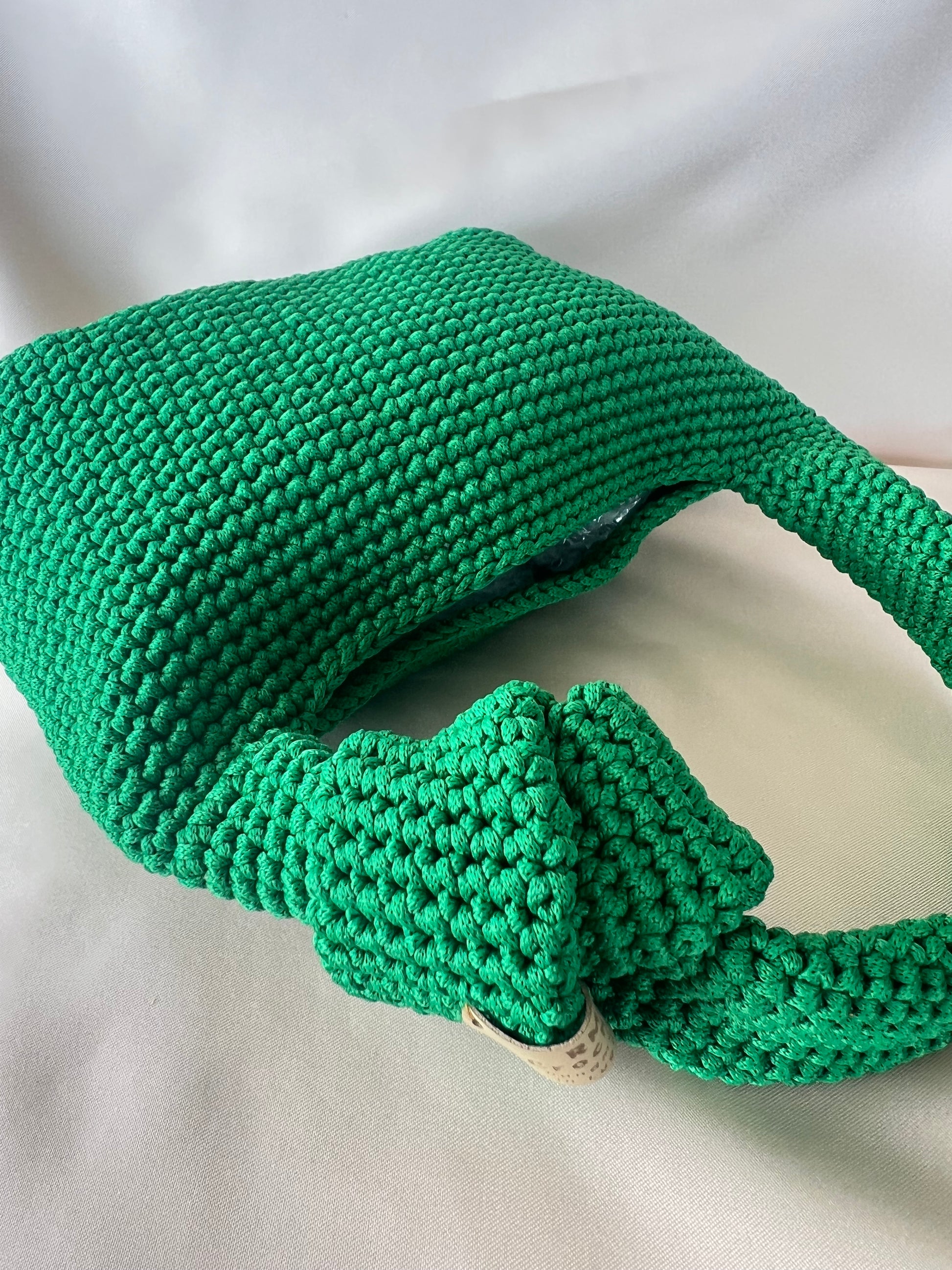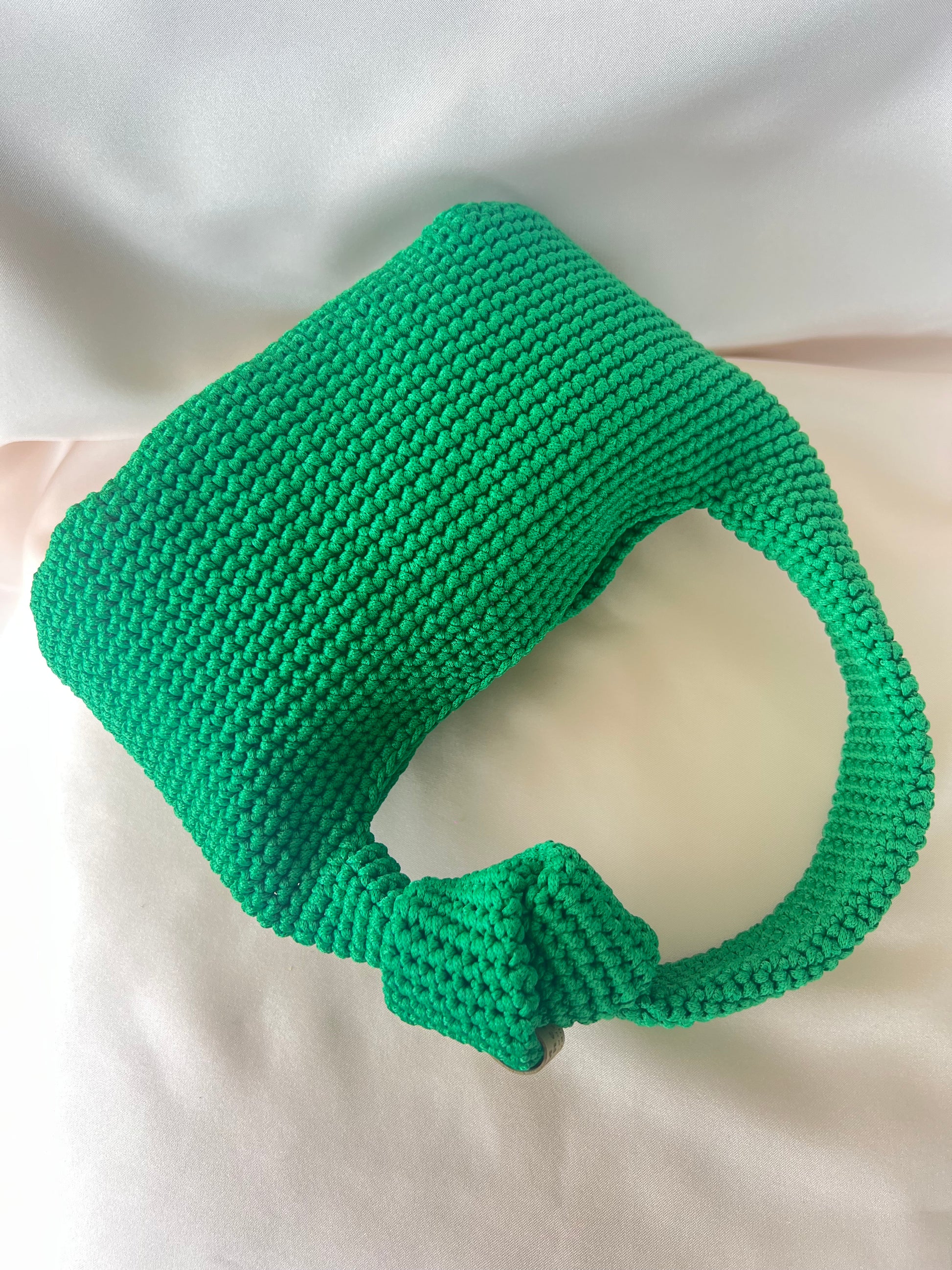 Mini Bag. Design moderno e deciso, realizzata all’uncinetto con filato verde prato.