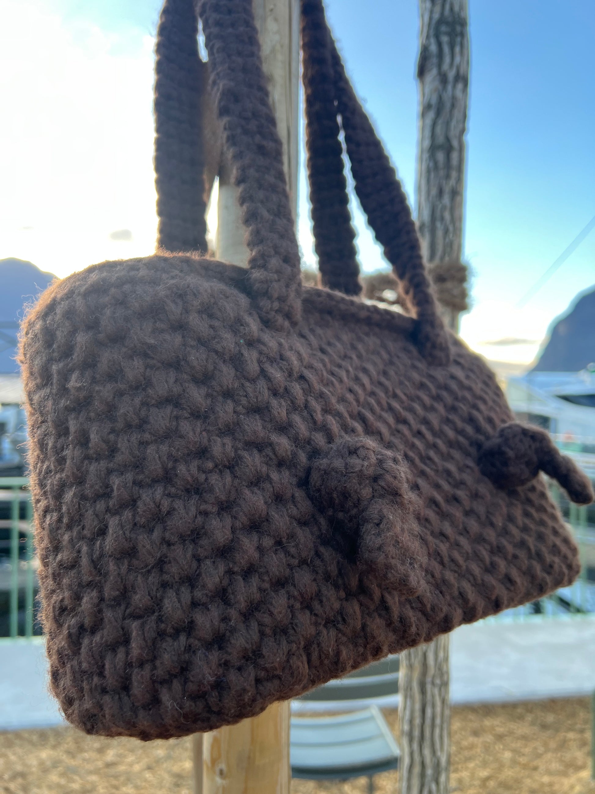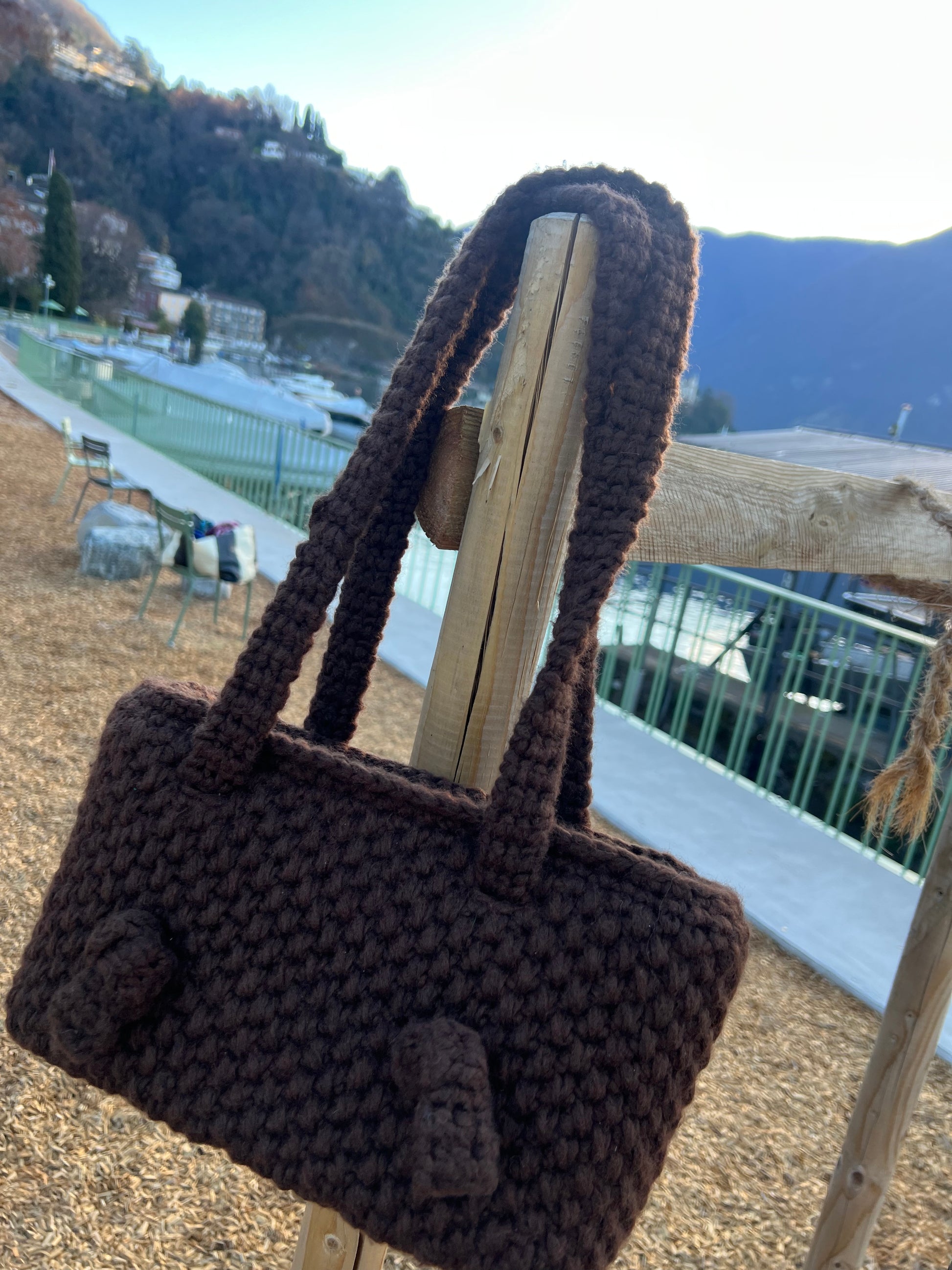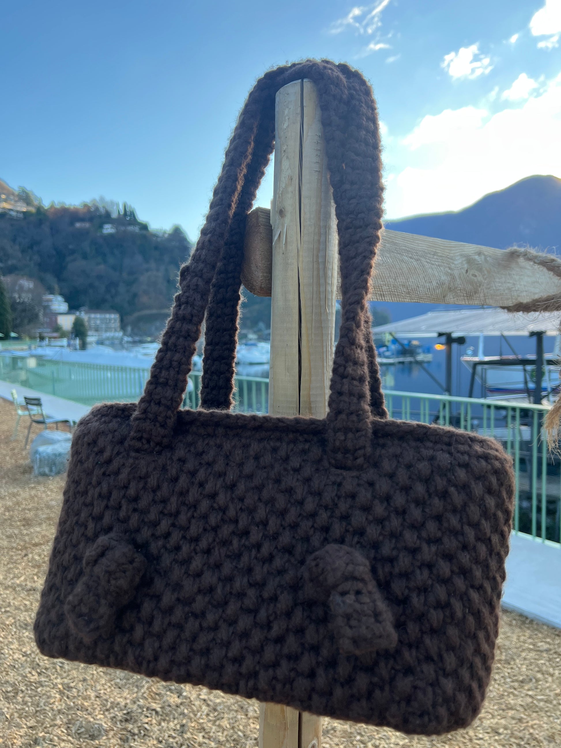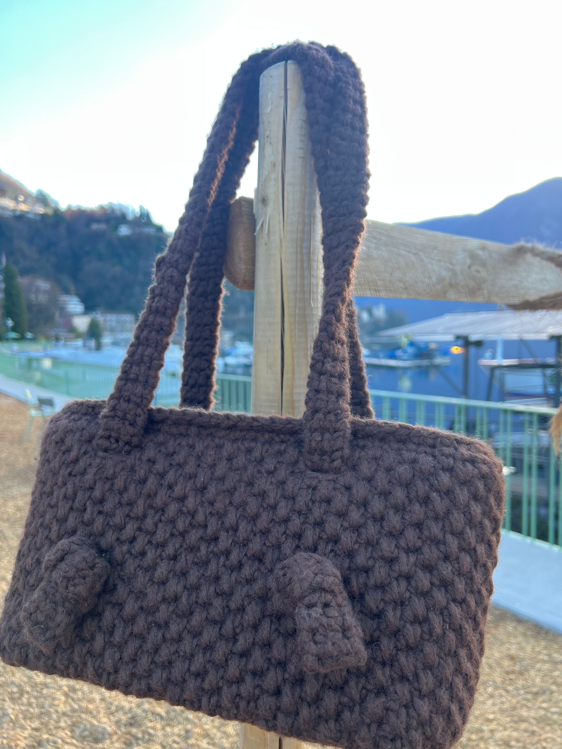 Borsa elegante con manici lunghi da portare a spalla, arricchiti da raffinati nodi decorativi.