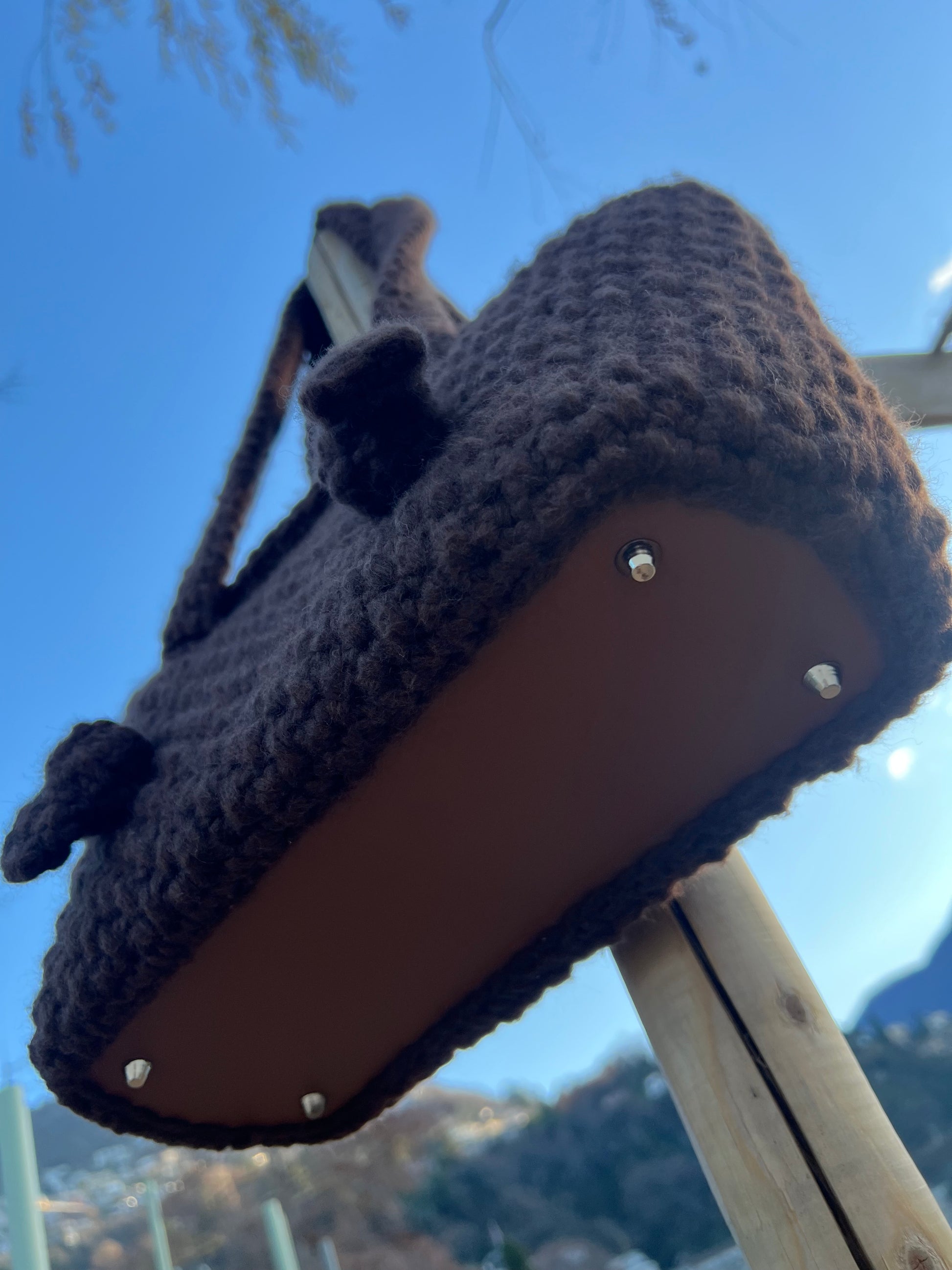 Base di appoggio in vera pelle color marrone, resistente e strutturata.