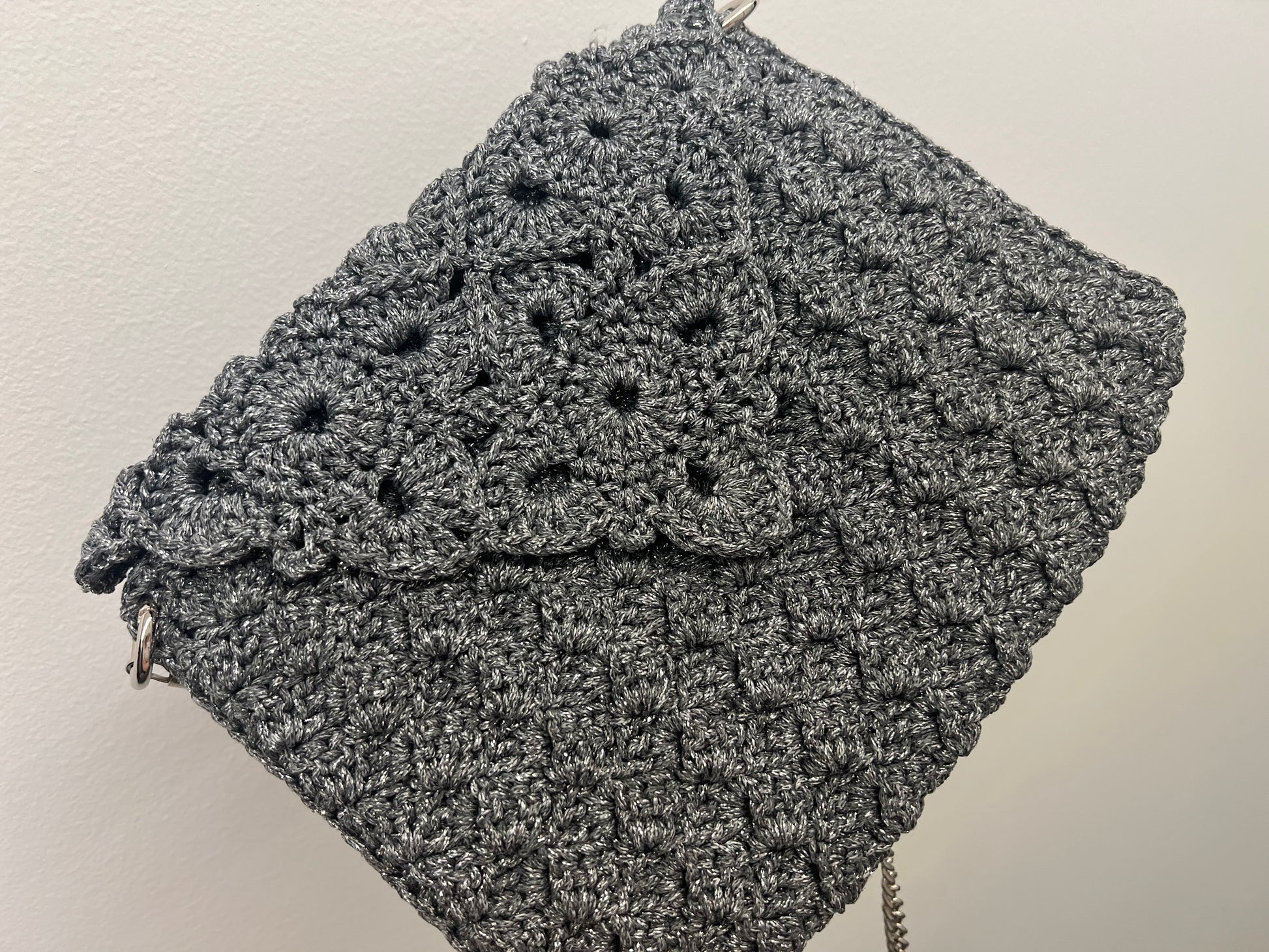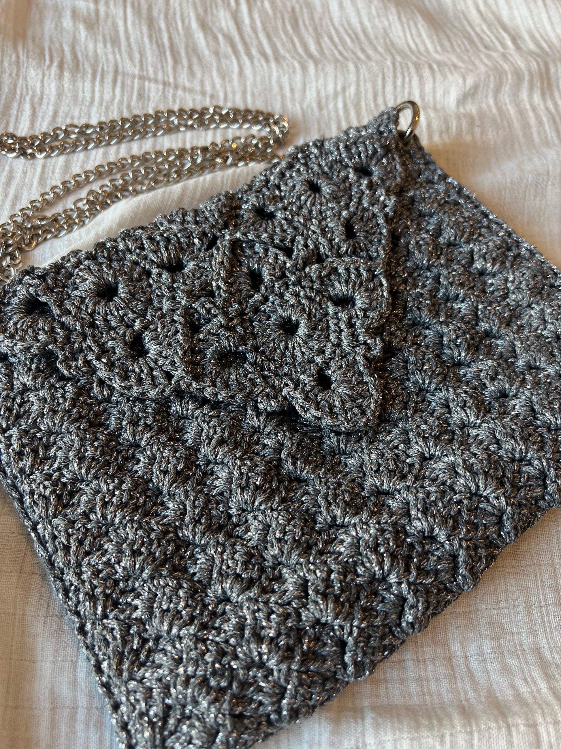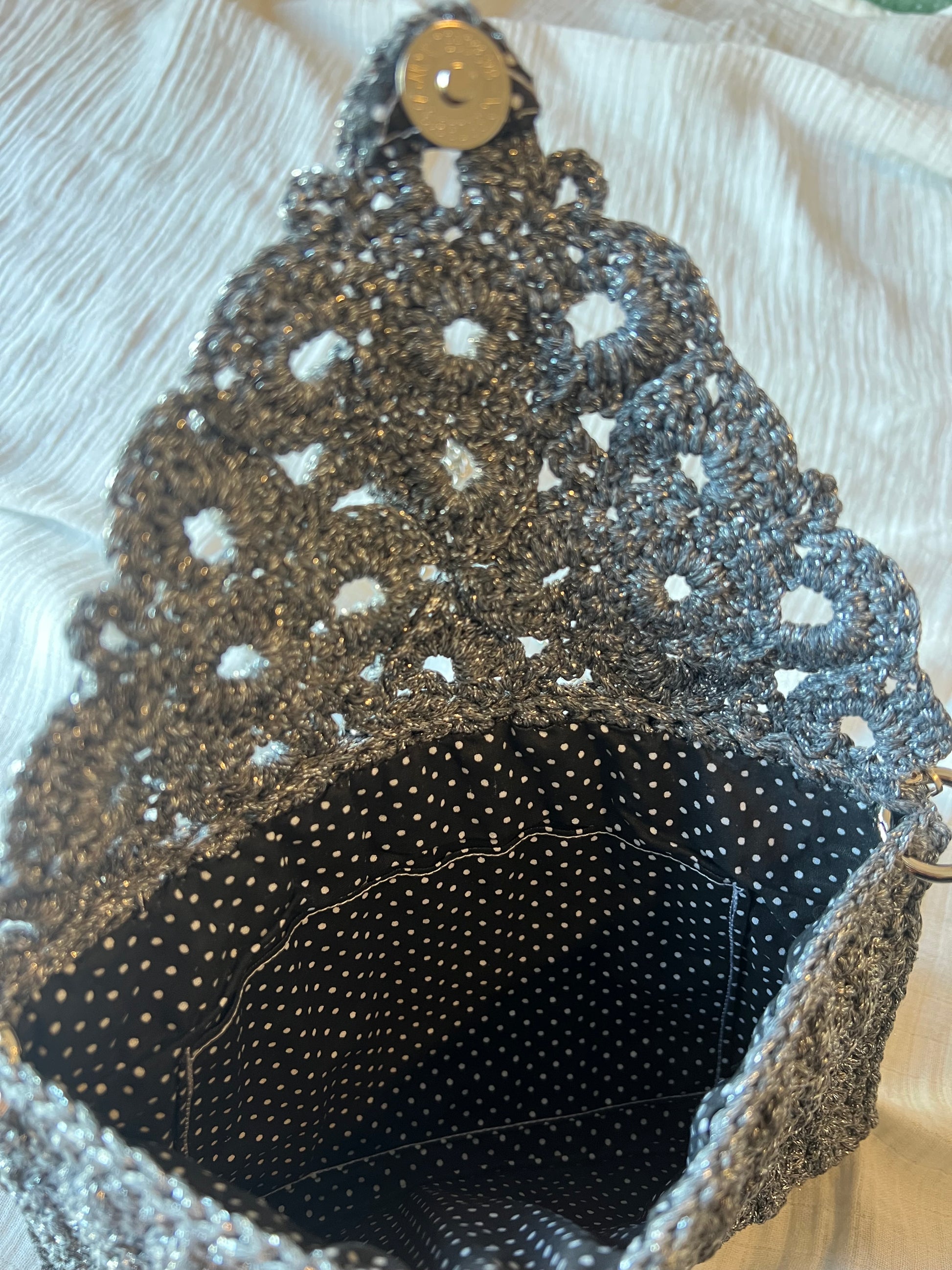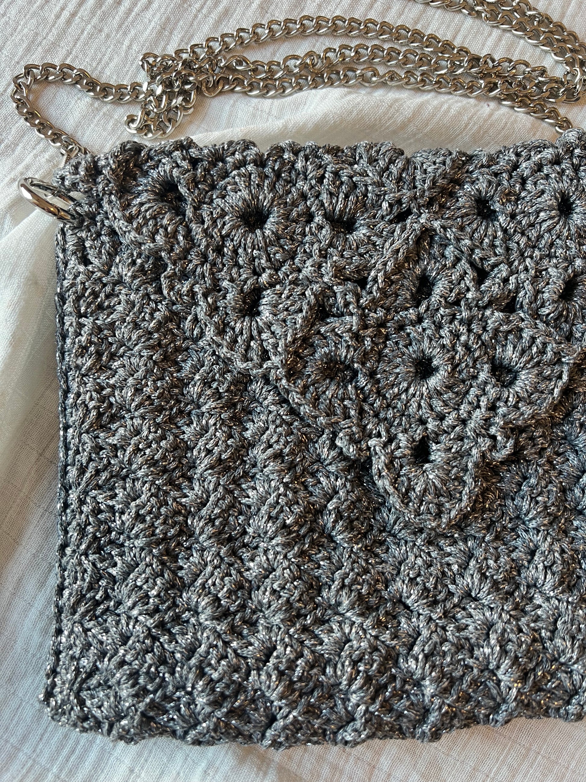 Pochette argento in lurex con catena, brillante e raffinata, questa pochette in lurex argento è perfetta per le occasioni speciali. Dotata di catena color argento per portarla a spalla o a mano.