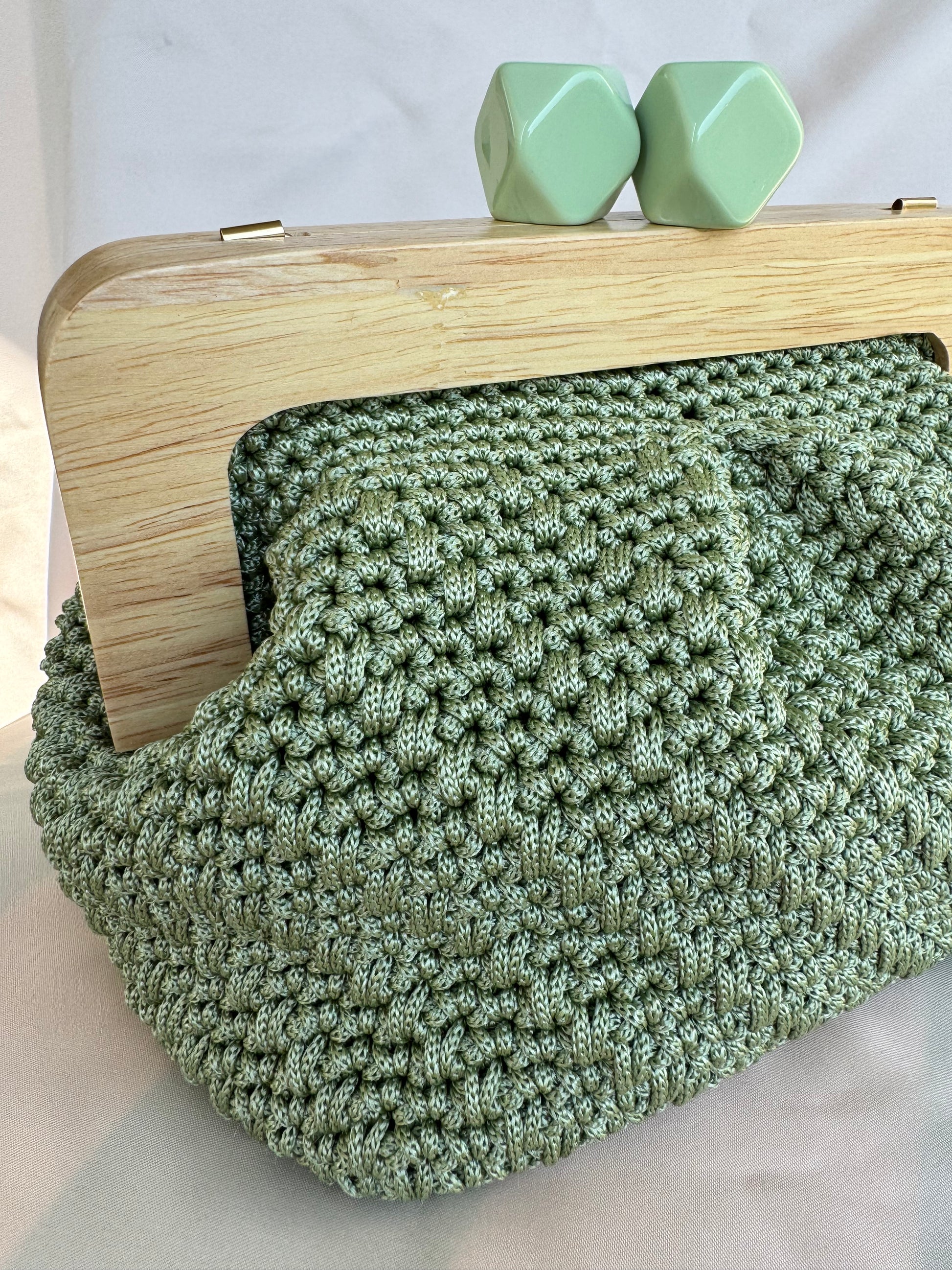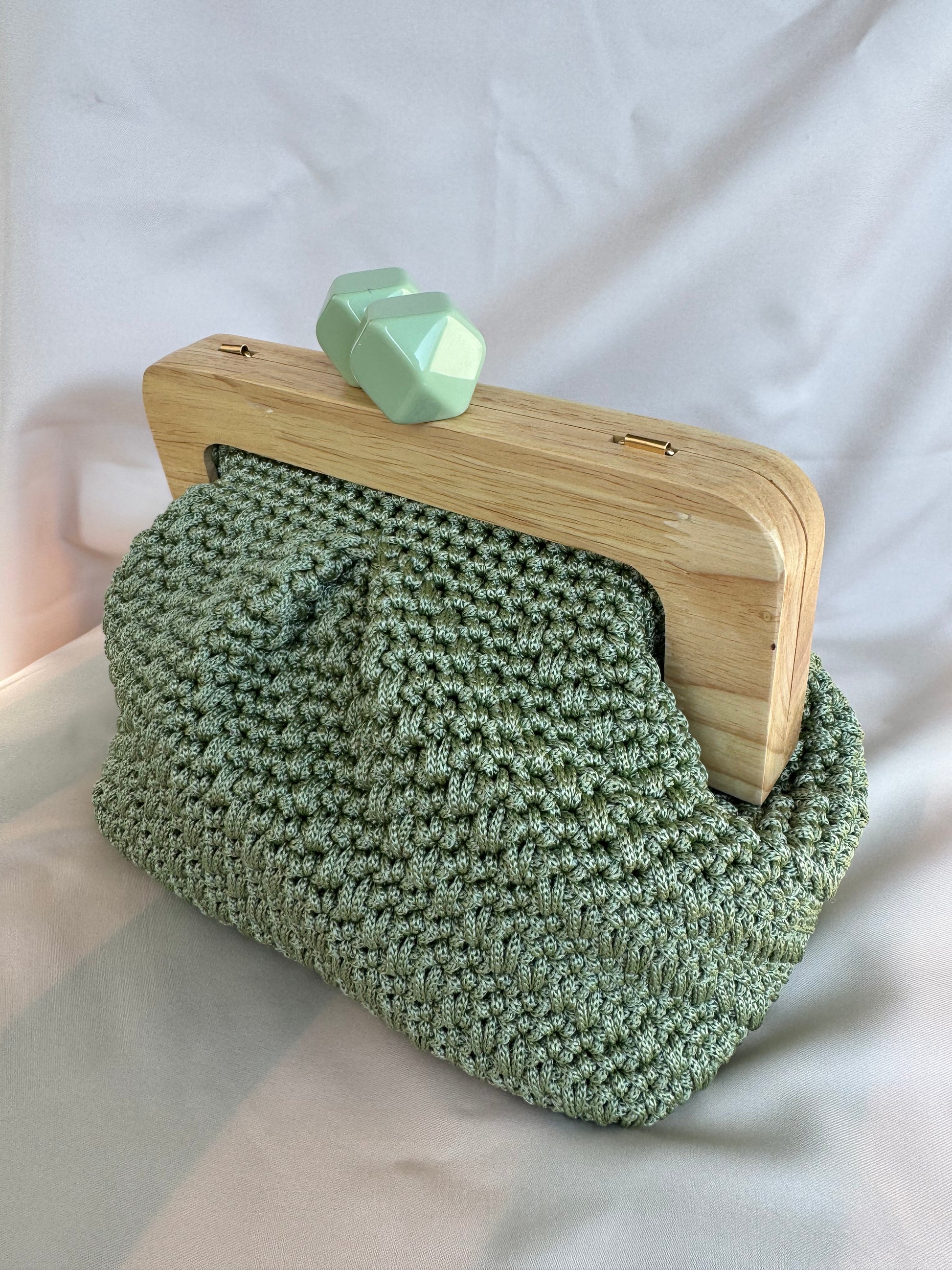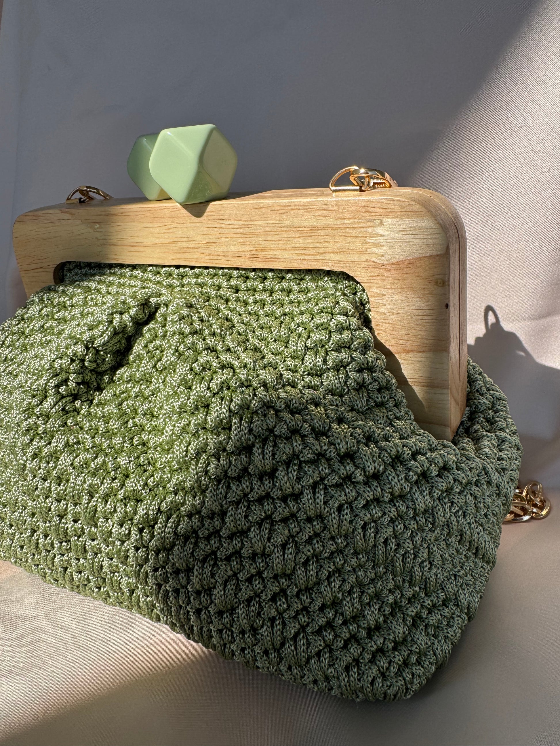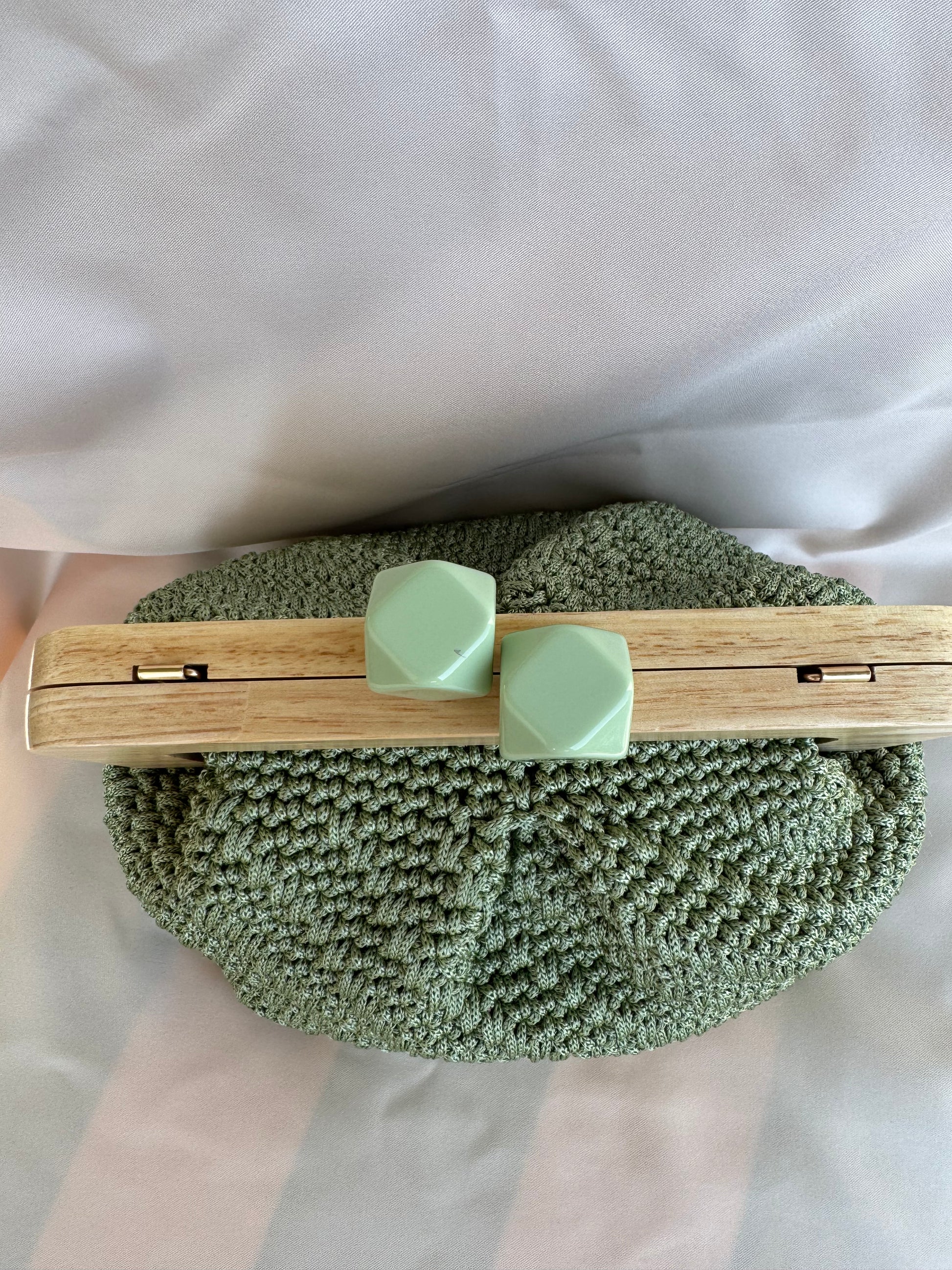 Meravigliosa Clic Clac, con chiusura verde salvia in resina e filato Verde Salvia.