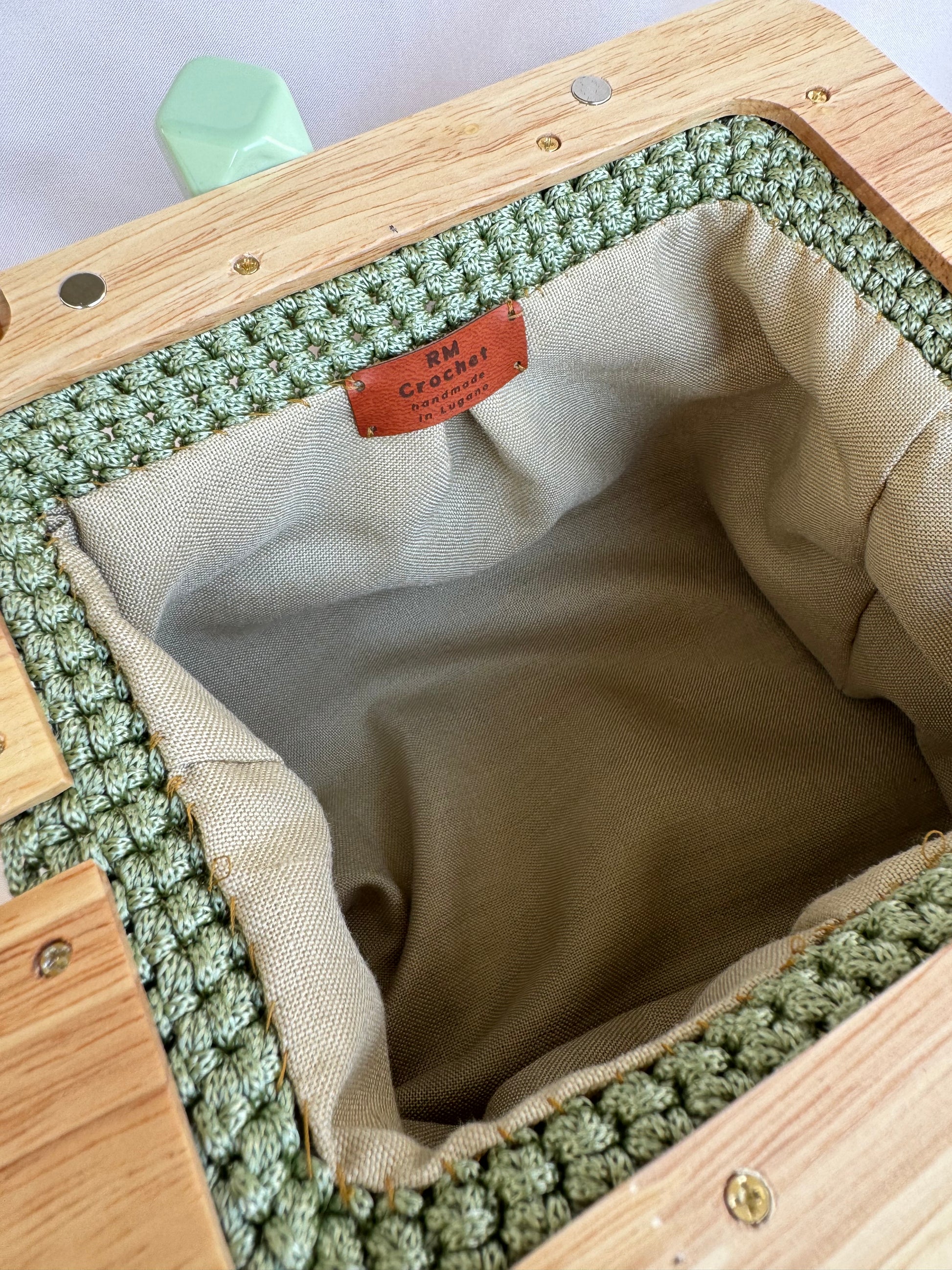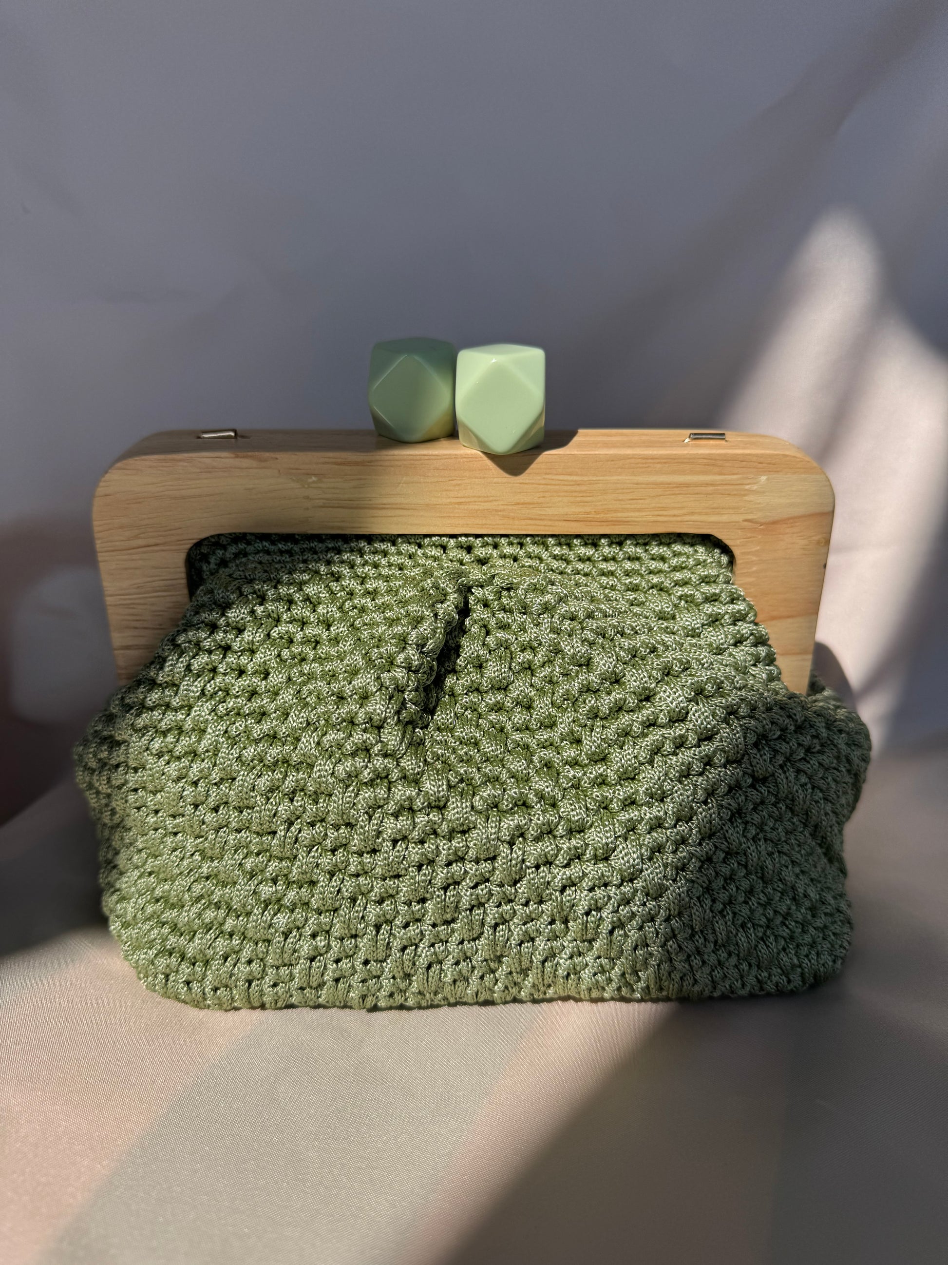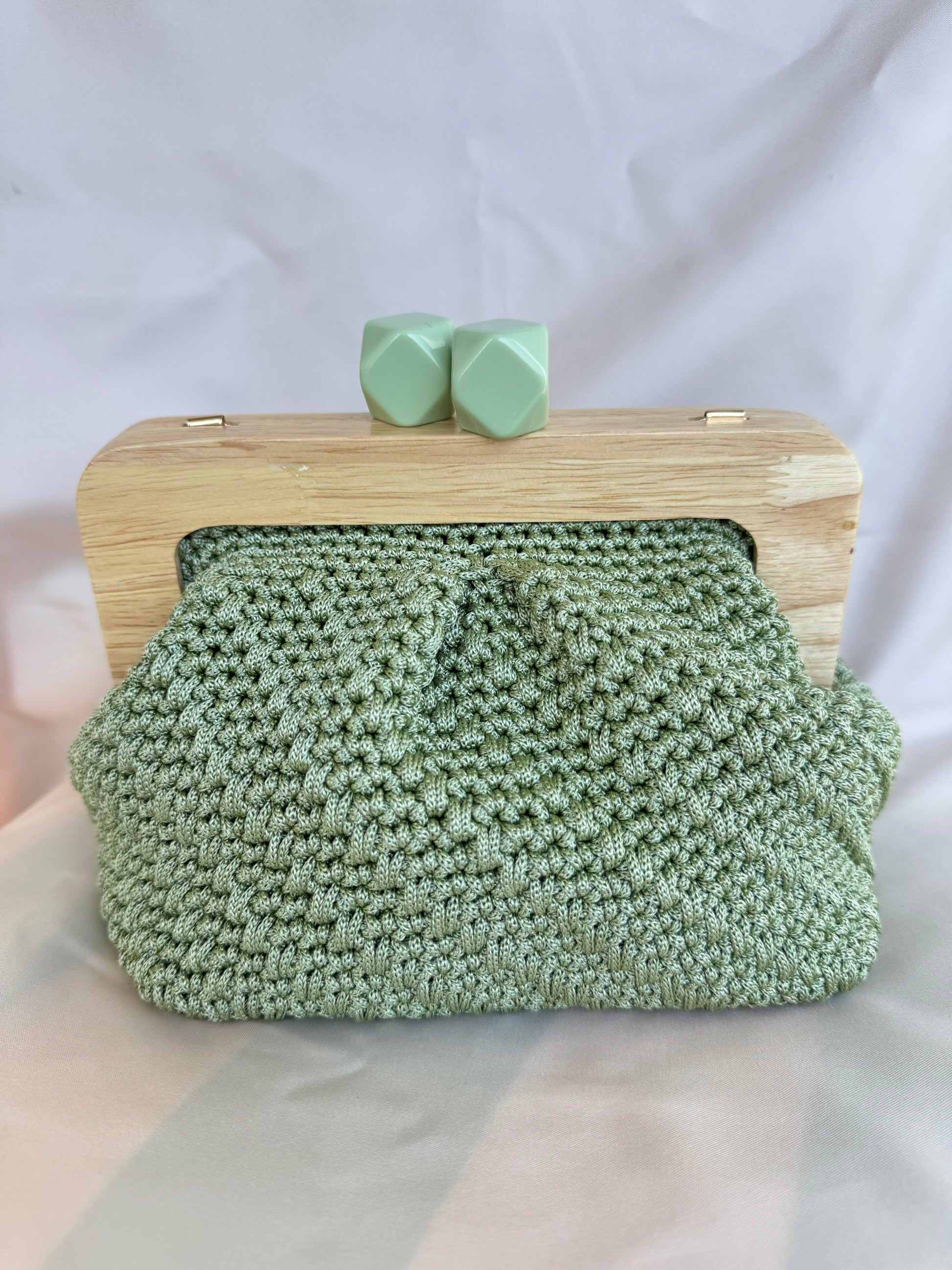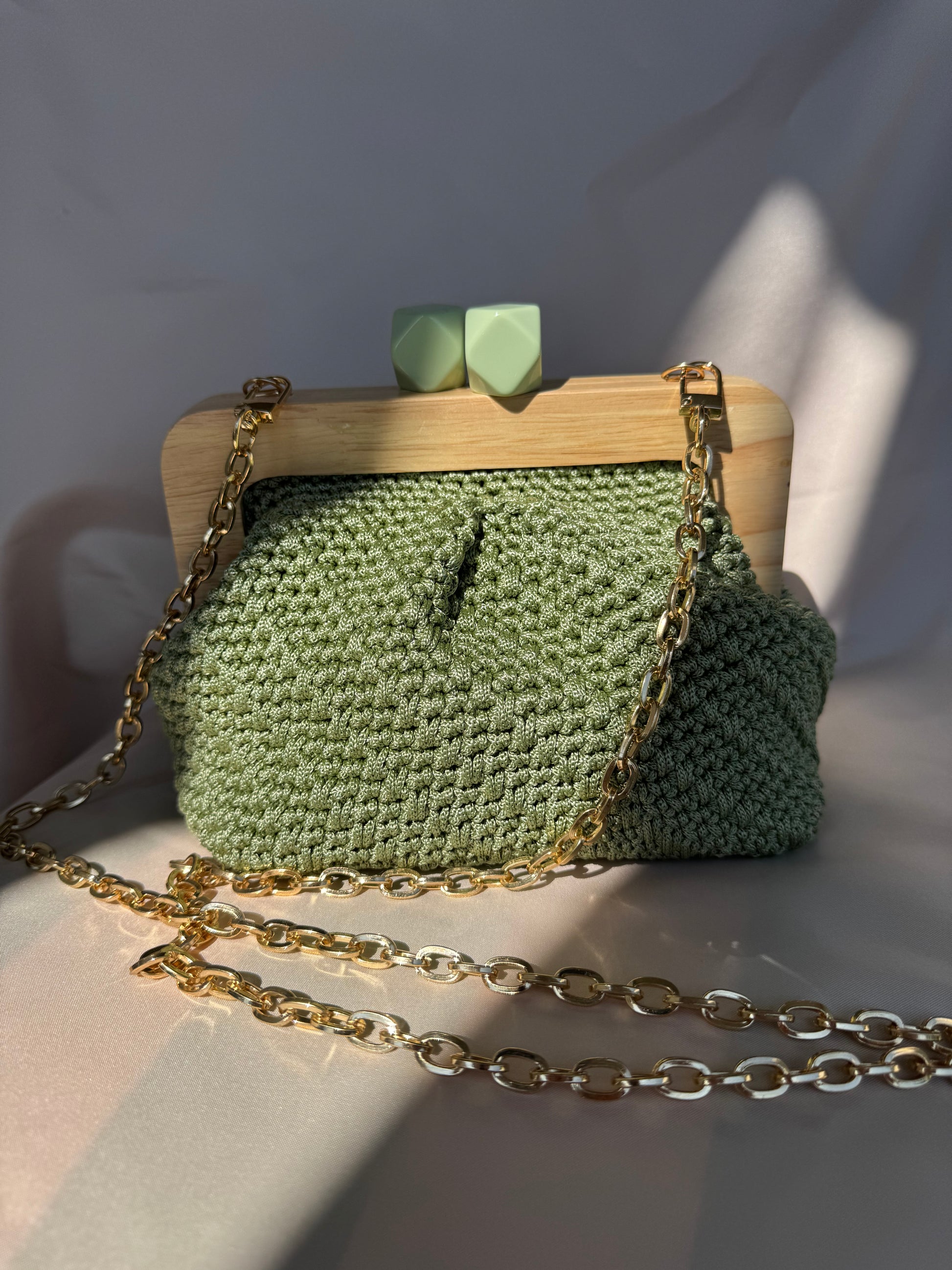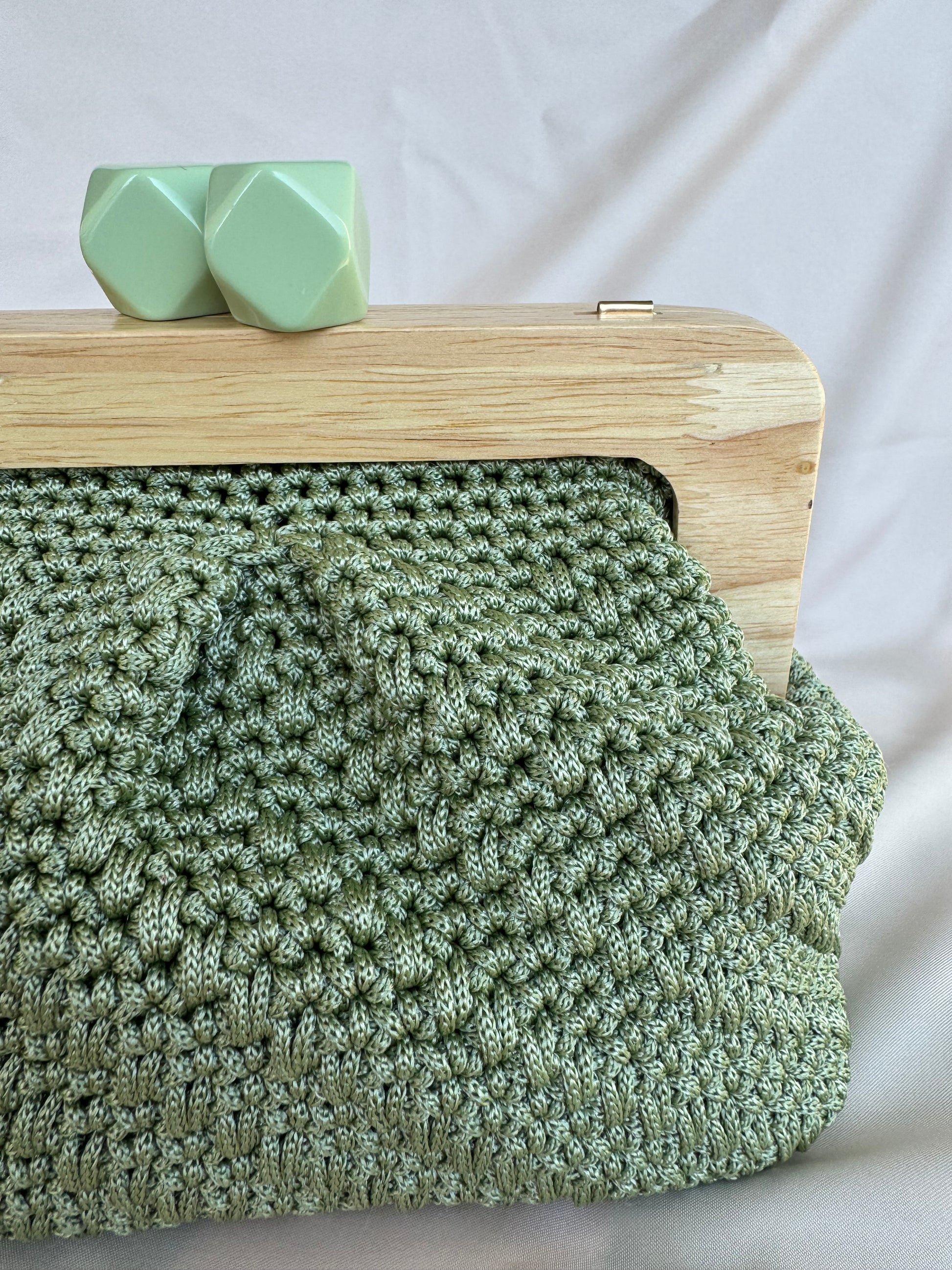 Meravigliosa Clic Clac, con chiusura verde salvia in resina e filato Verde Salvia.