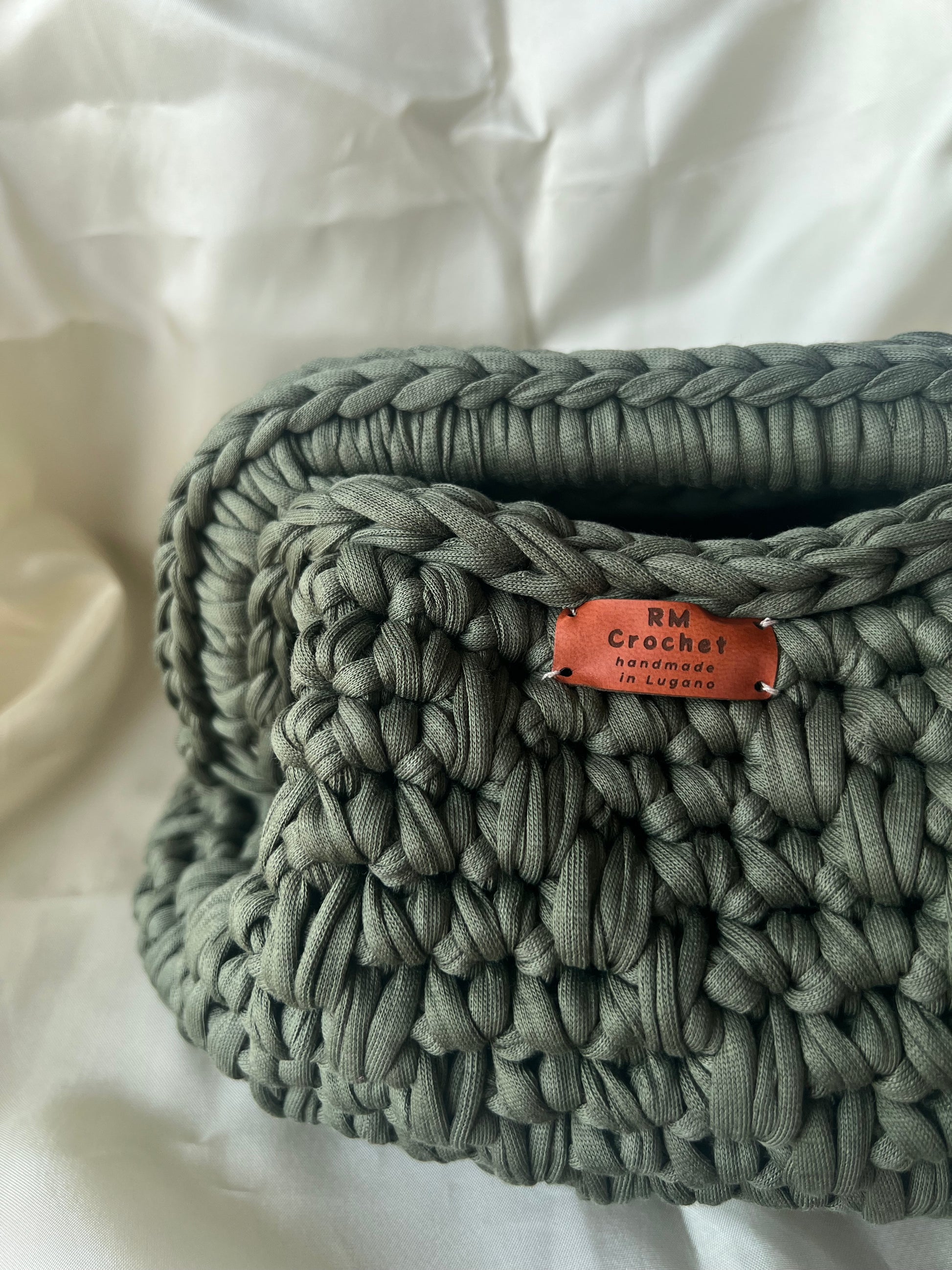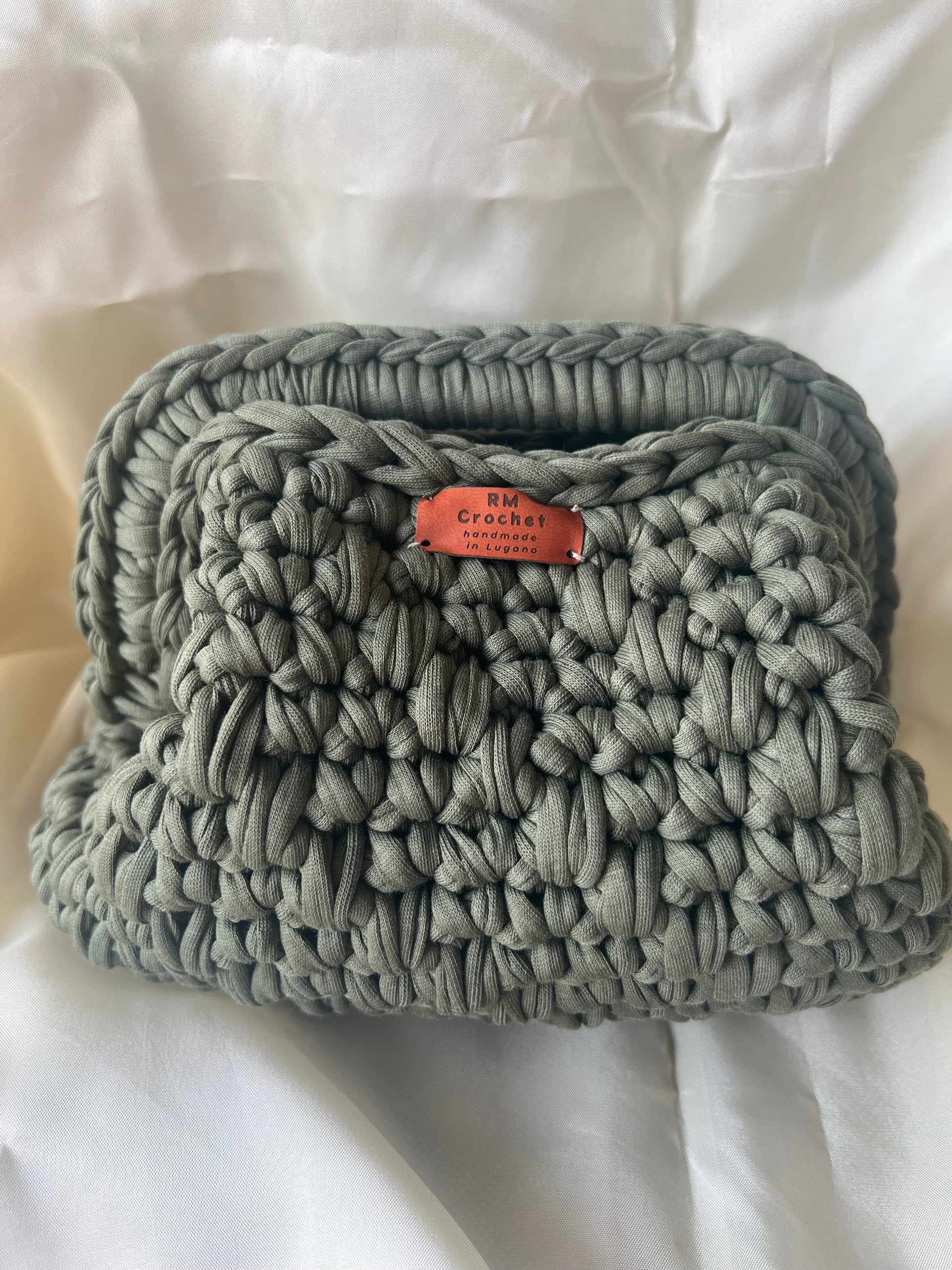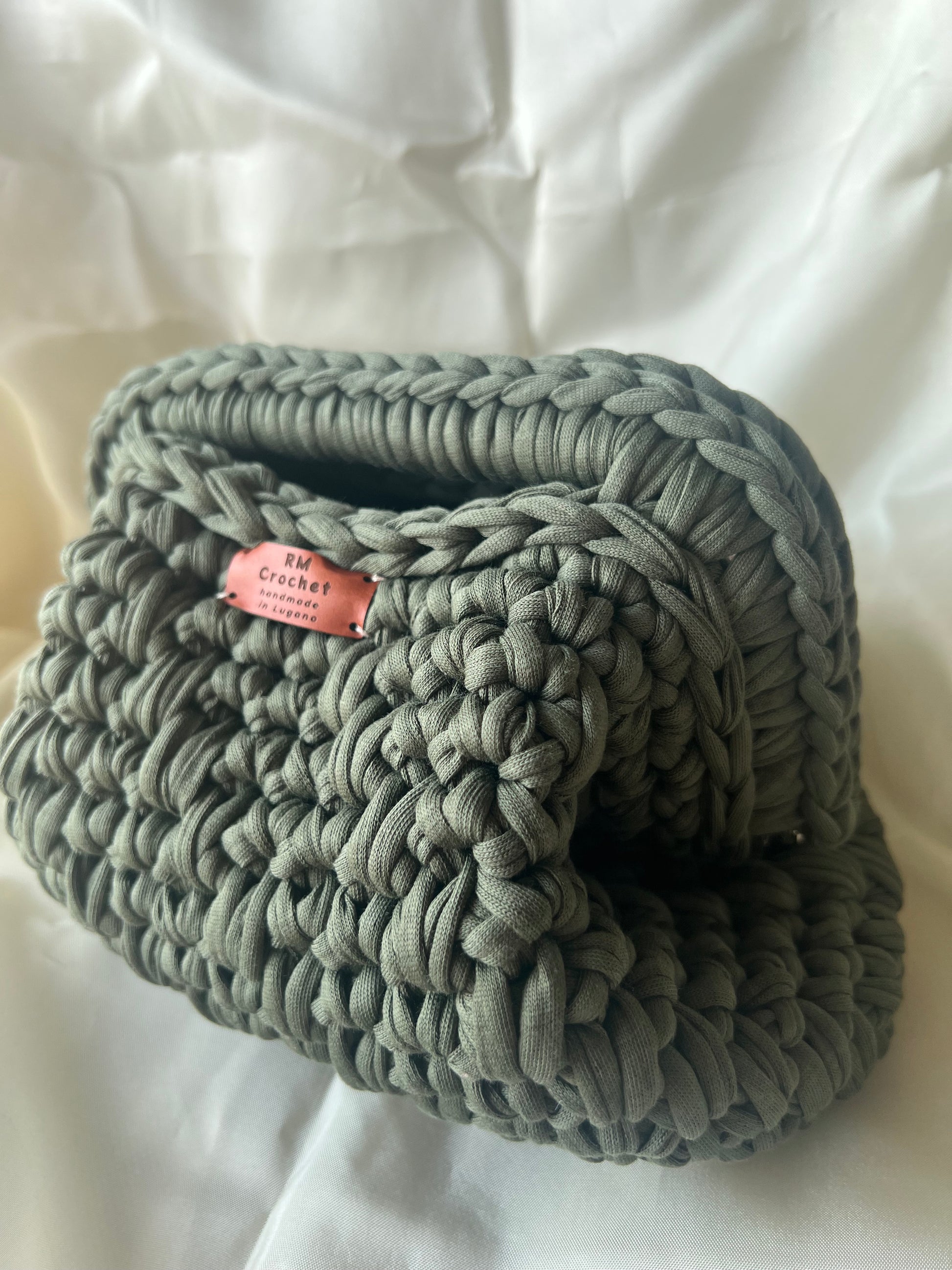 Meravigliosa clutch verde, con un bellissimo lavoro intrecciato sul davanti. Molto moderna e versatile.