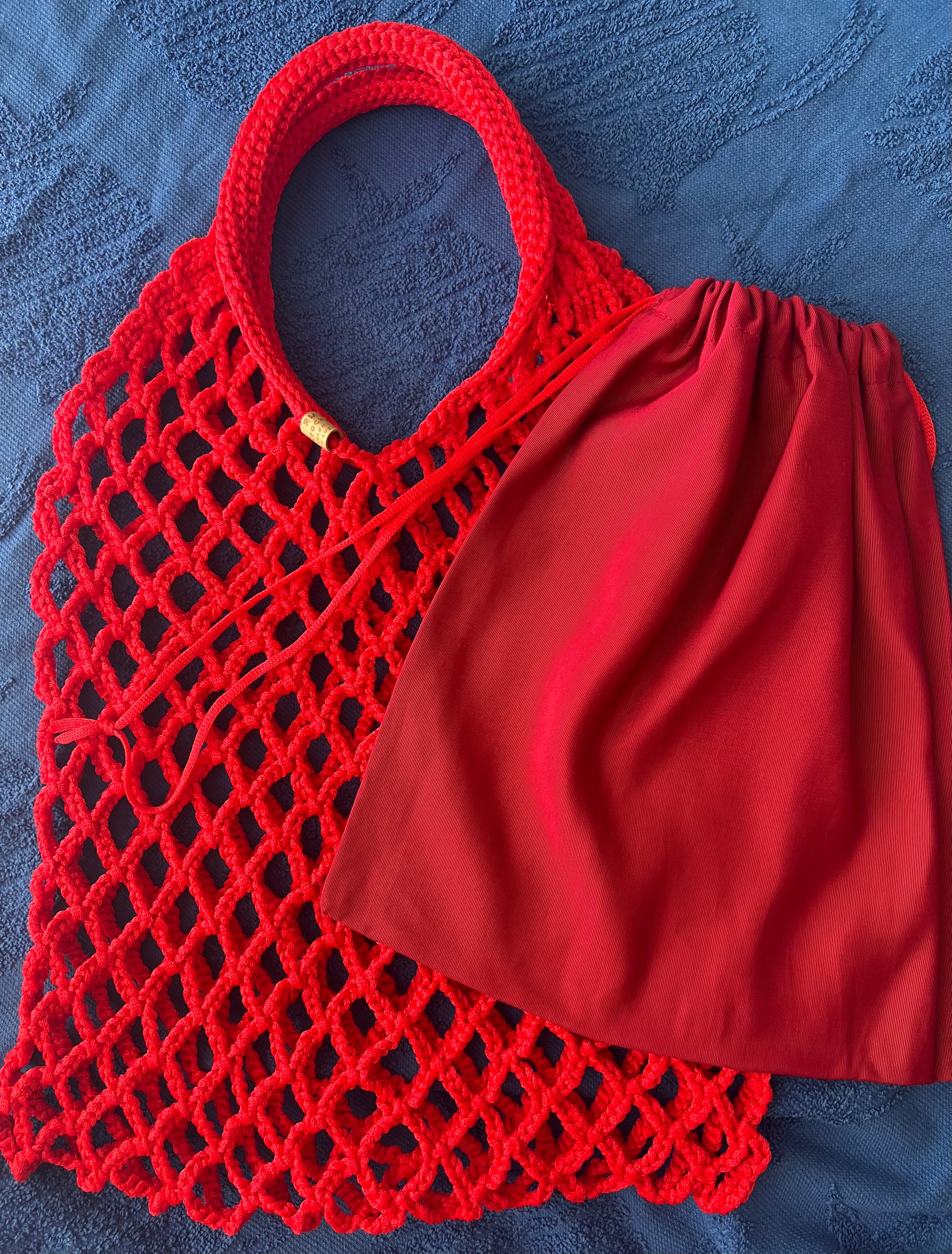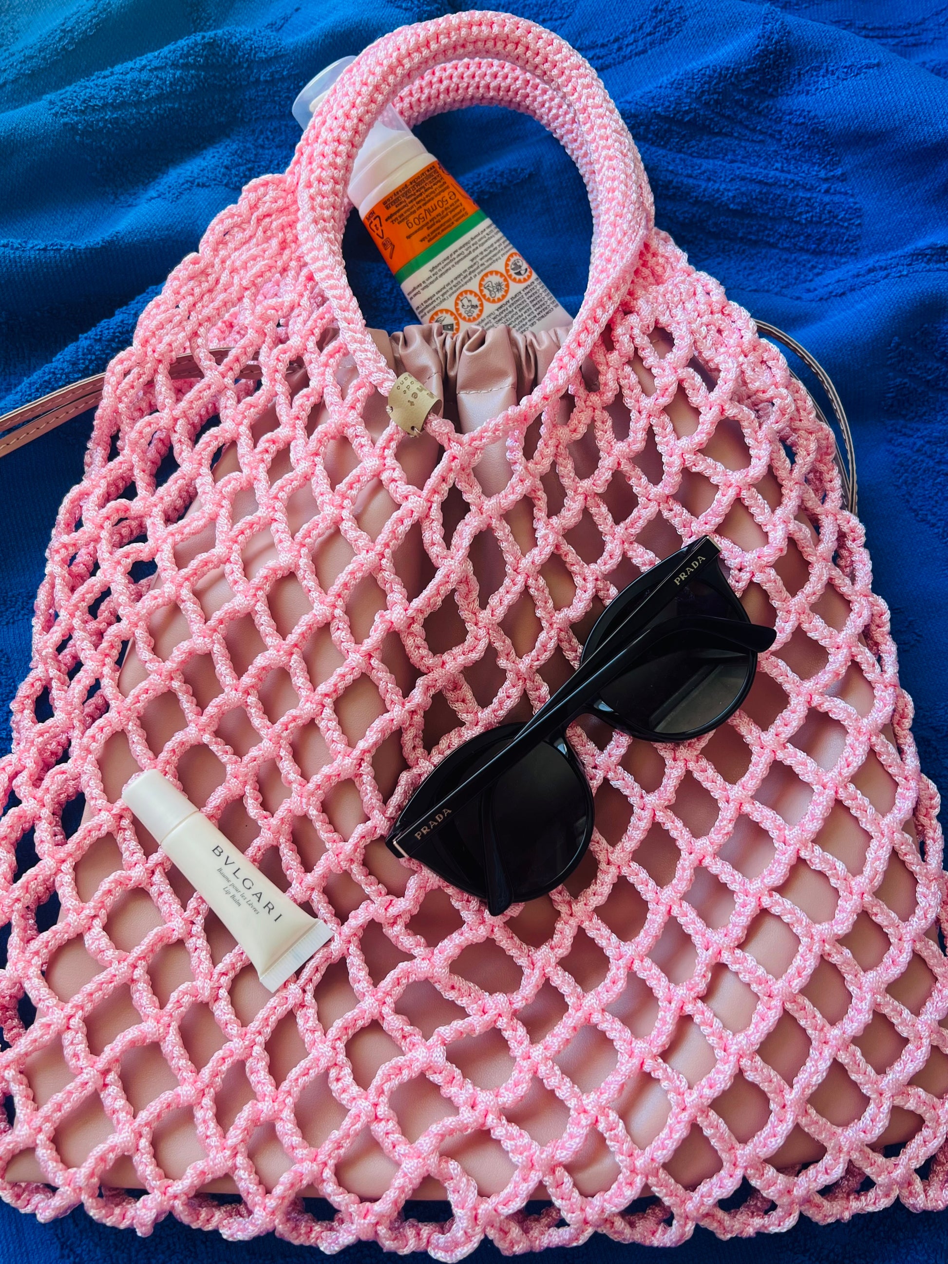 Leggera, pratica e 100% artigianale, questa borsa in crochet è pensata per accompagnarti con stile nelle giornate al mare o in piscina.