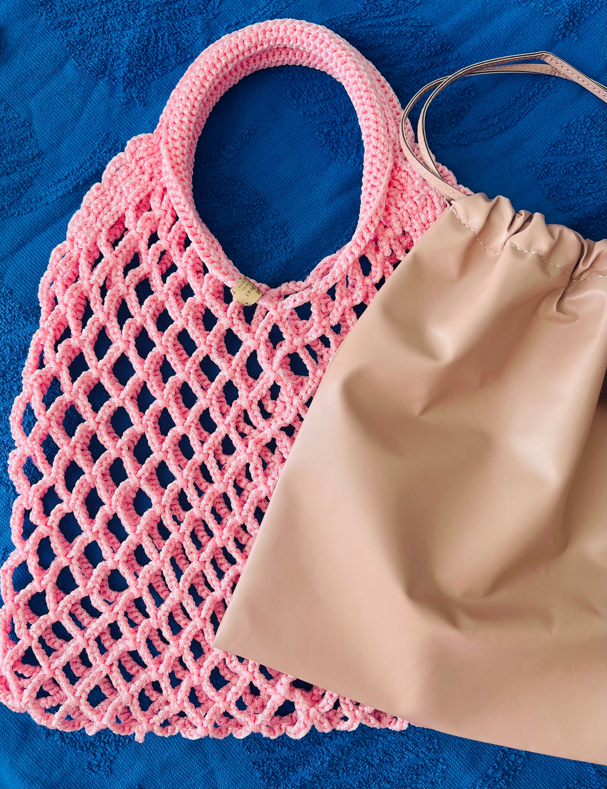 La lavorazione a rete che unisce estetica e funzionalità. È dotata di una sacca interna removibile, perfetta per contenere gli oggetti più piccoli e mantenerli al sicuro.